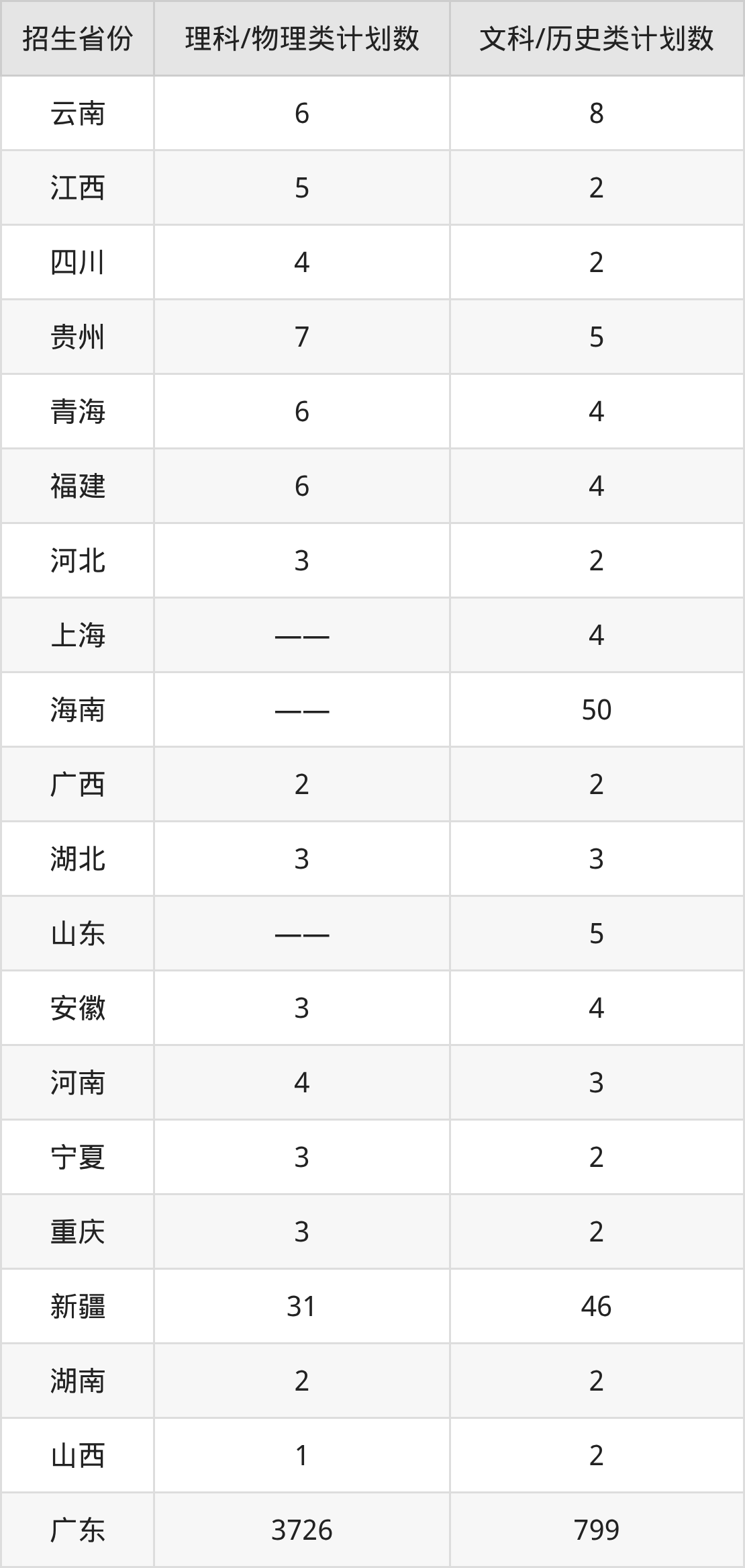 分省招生计划: