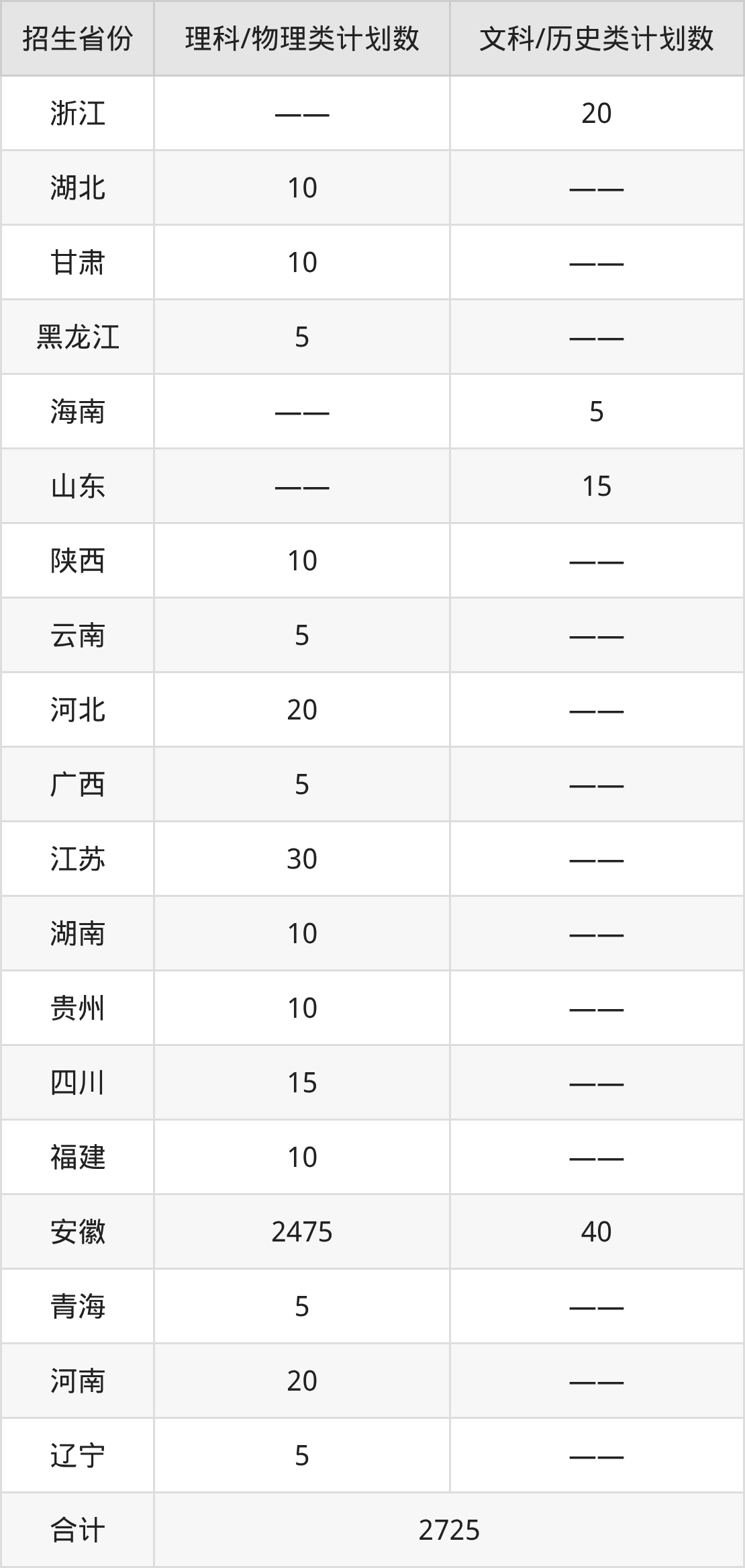 分科类招生计划:历史类40人、物理类2645人、3+3省份40人