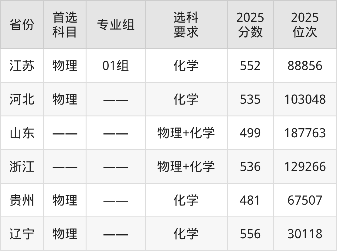 物理类各专业组分数线:01组552分。