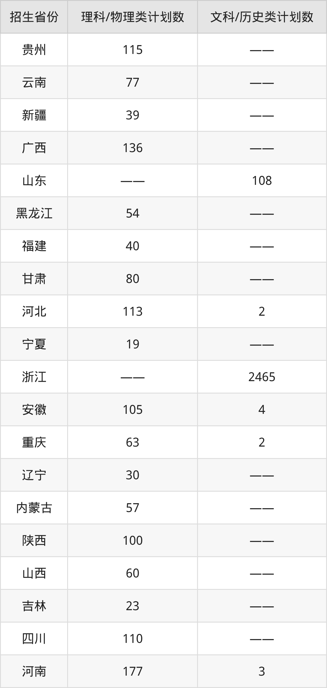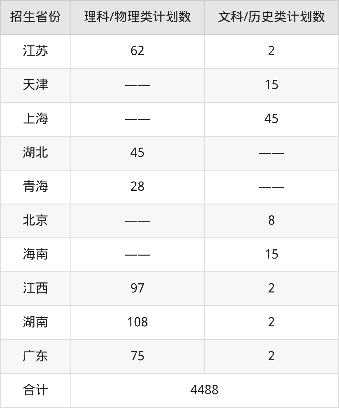 中国计量大学招生简章显示:学校在全国30个省(市、自治区)招收4488人,包括3+3省份2656人、历史类19人、物理类1774人、理科39人,招生专业有自动化、电气工程及其自动化、机械设计制造及其自动化等。