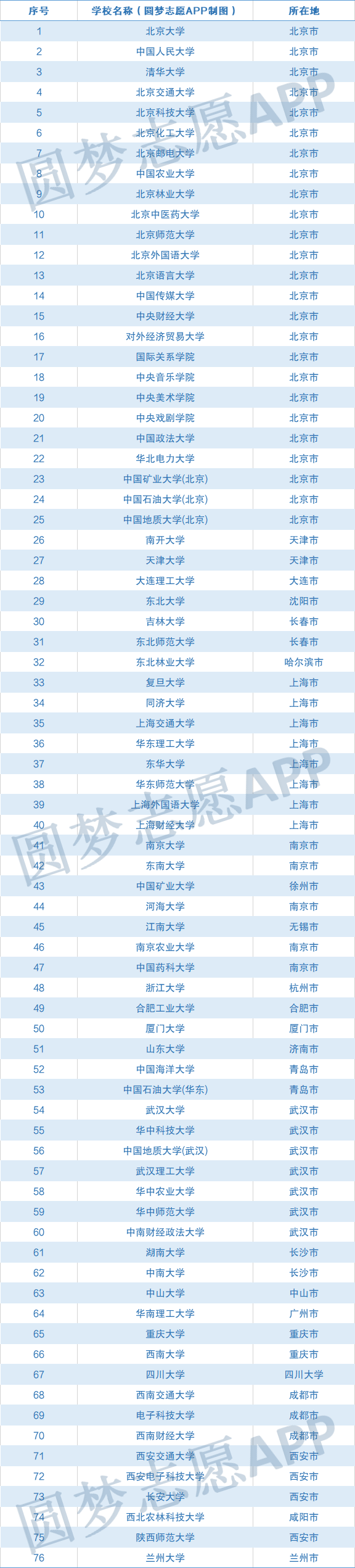 2)其余“211工程”大学均已入选国家“双一流”建设项目,代表为:西藏大学、青海大学、宁夏大学;