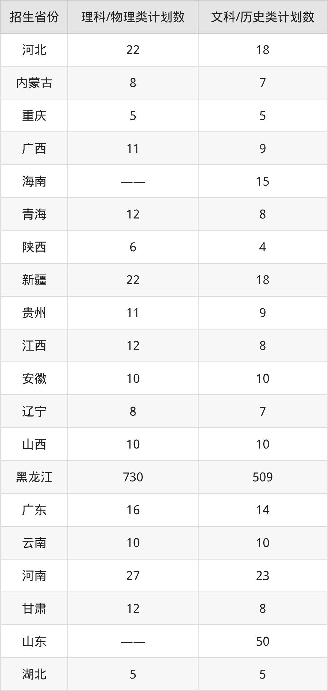 分省招生计划: