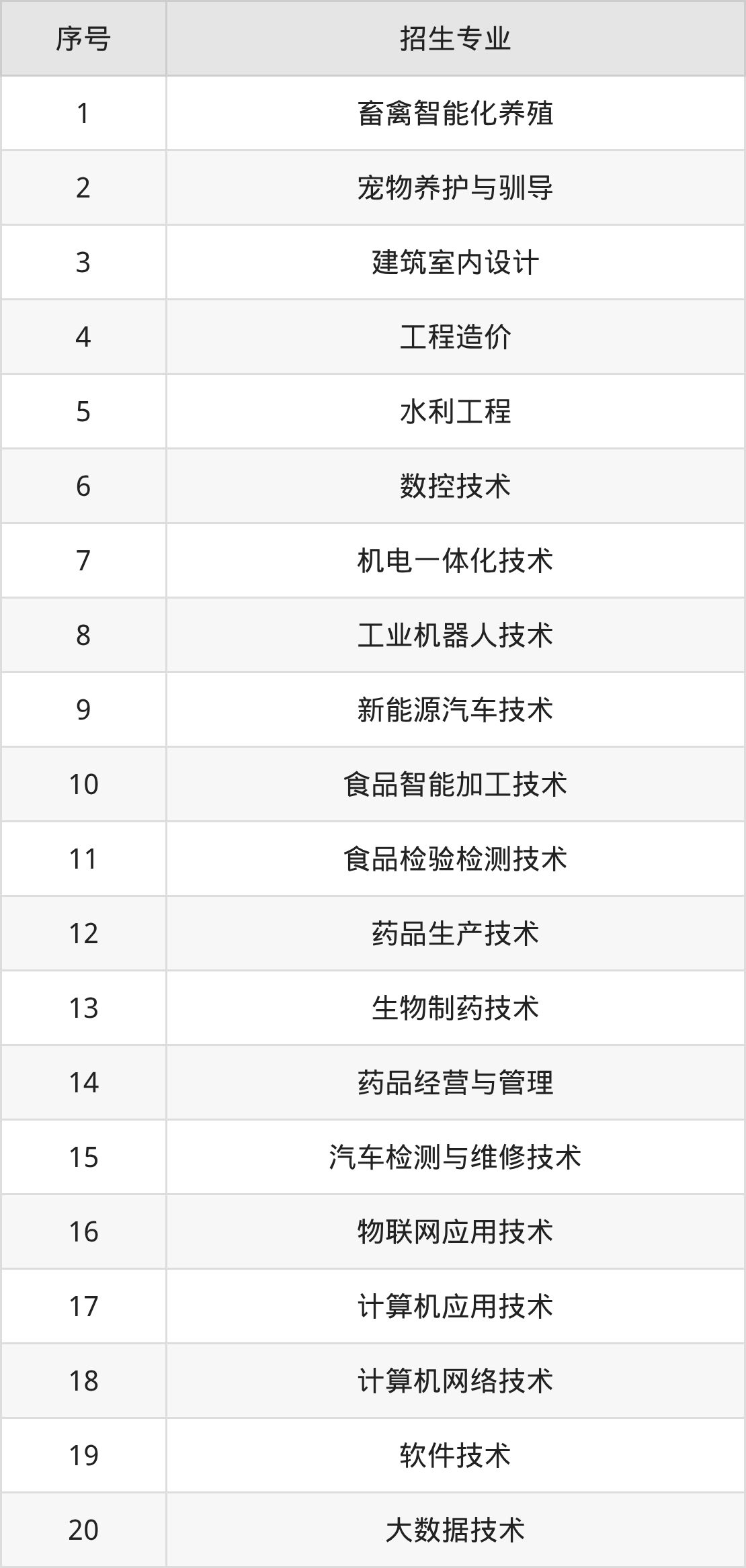 种子生产与经营、作物生产与经营管理、园艺技术、设施农业与装备、现代农业装备应用技术、绿色食品生产技术、现代农业经济管理、动物医学、畜牧兽医、宠物医疗技术