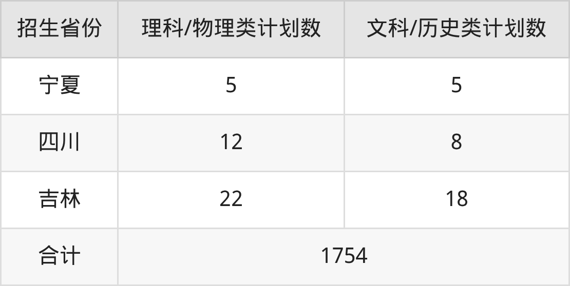 分科类招生计划:3+3省份65人、文科18人、理科22人、历史类695人、物理类954人
