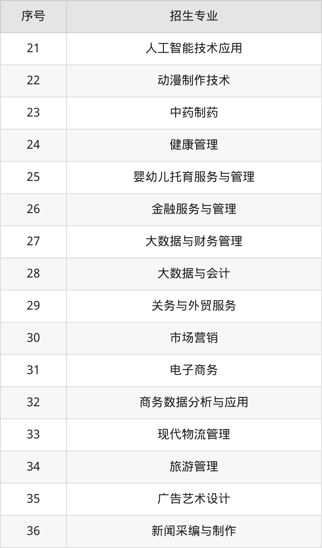 2、招生专业
