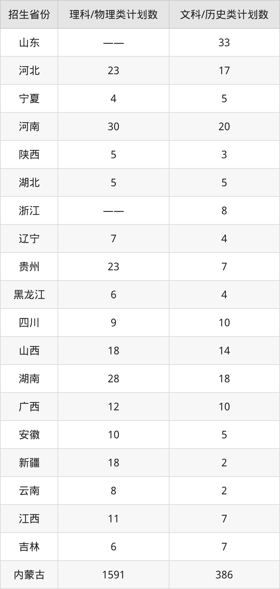 分省招生计划: