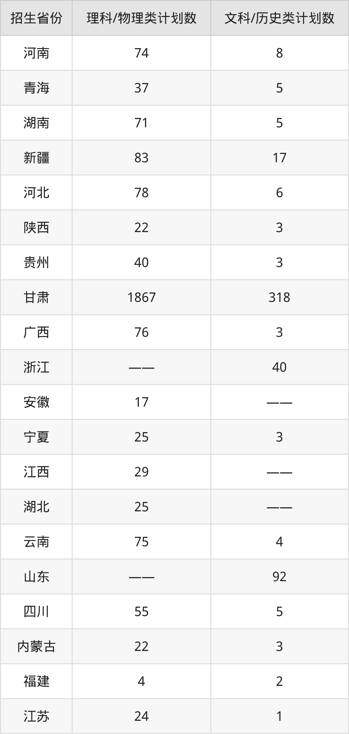 分省招生计划: