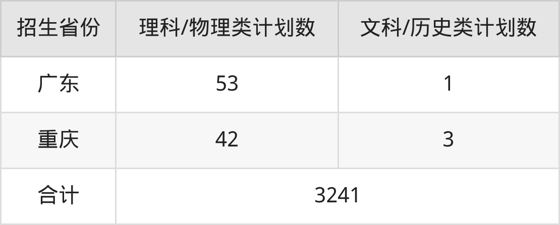 分科类招生计划:历史类373人、物理类2636人、3+3省份132人、文科17人、理科83人