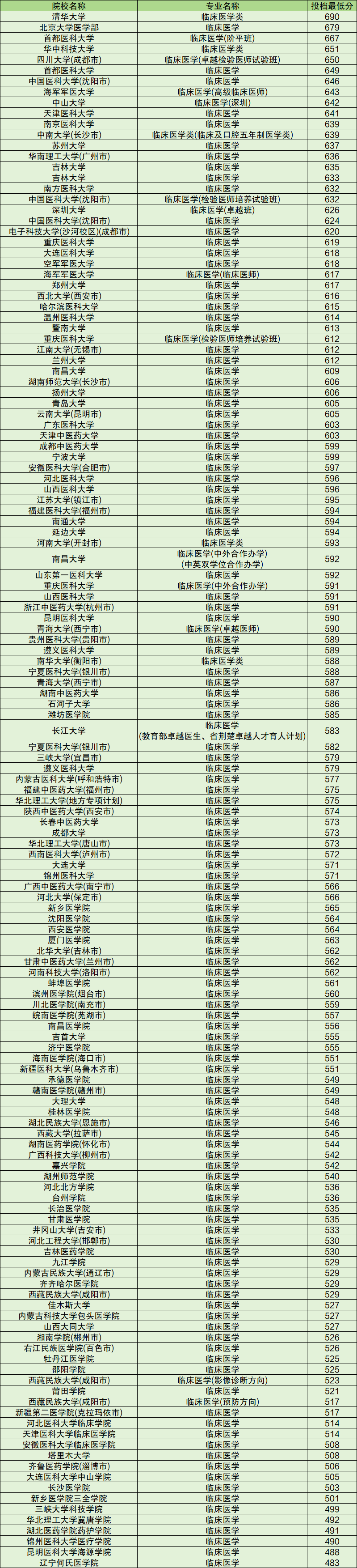 二、临床医学专业录取分数线