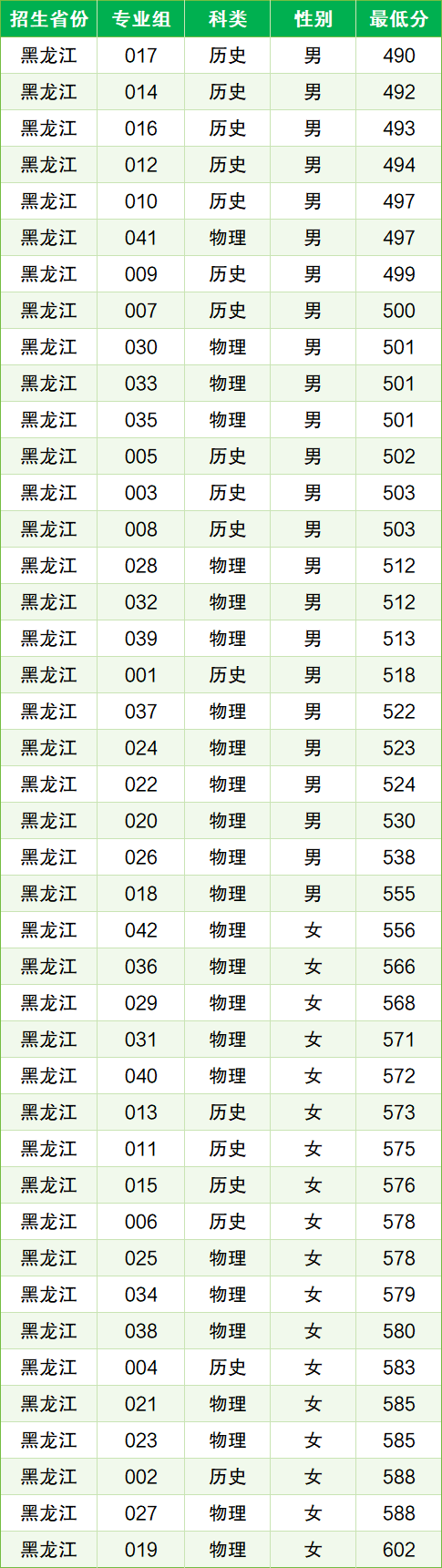 | 批次 | 科类 | 性别 | 最低分 |