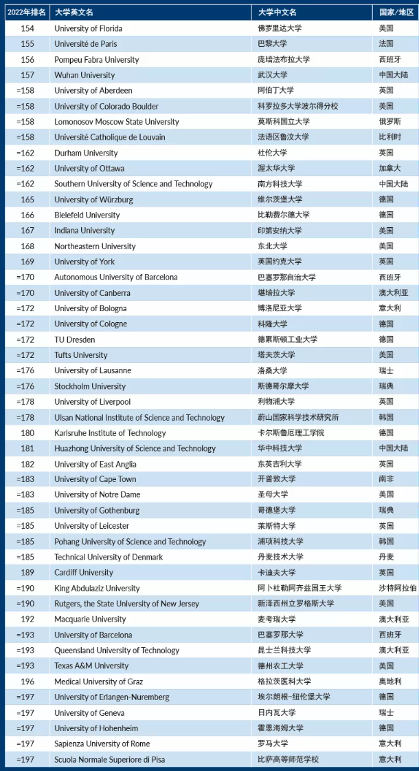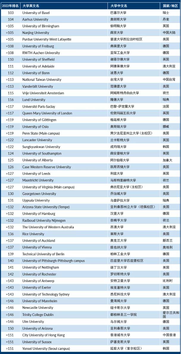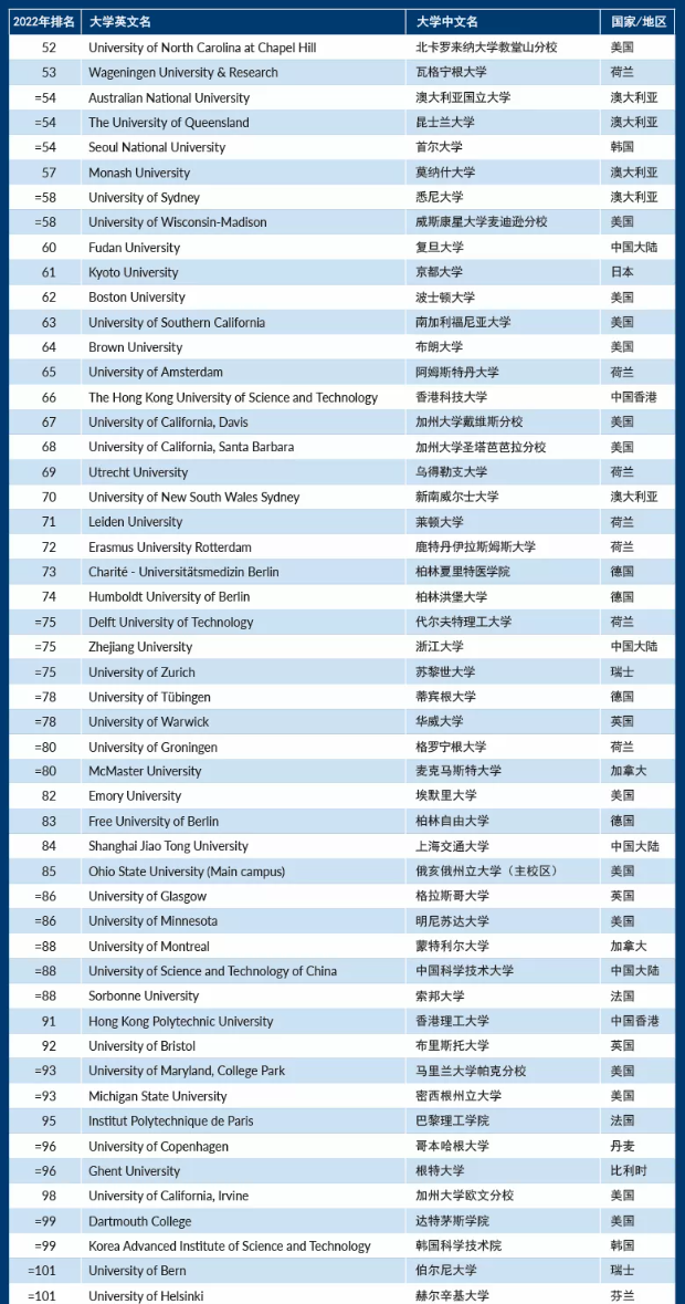 二、2022泰晤士世界大学排行榜最新排名(完整版)