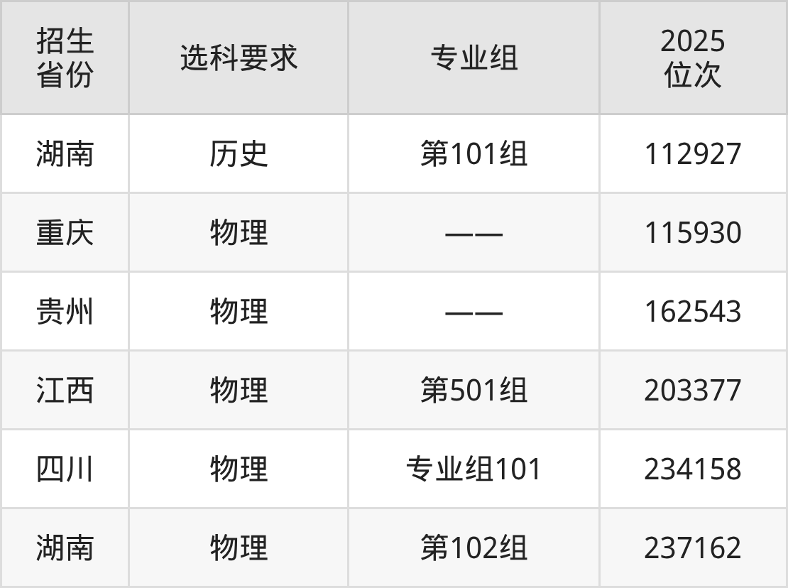 云南机电职业技术学院2025年在全国各省的位次差异较大,最高位次是112927位(湖南历史类)、最低位次是237162位(湖南物理类)。各省具体位次请看下图: