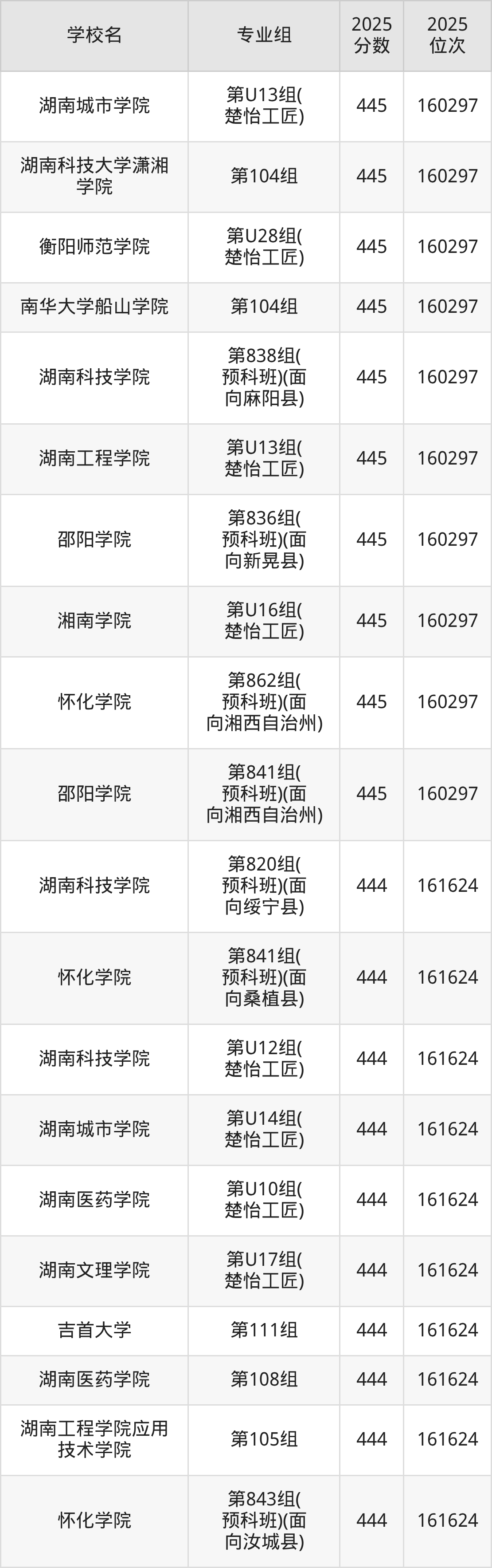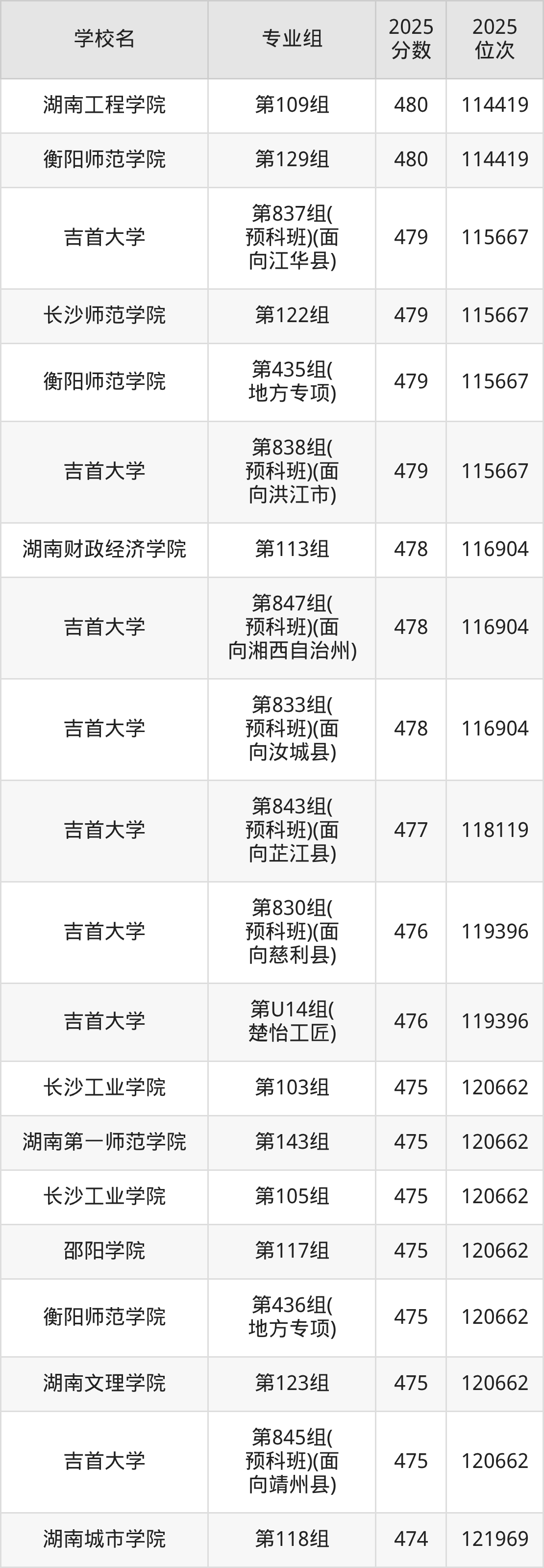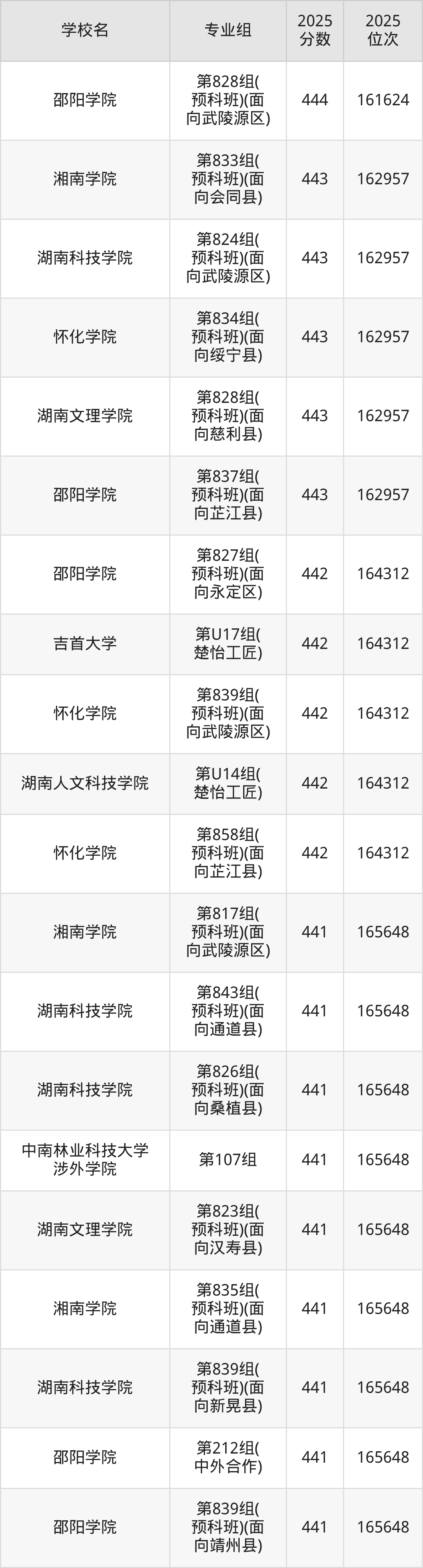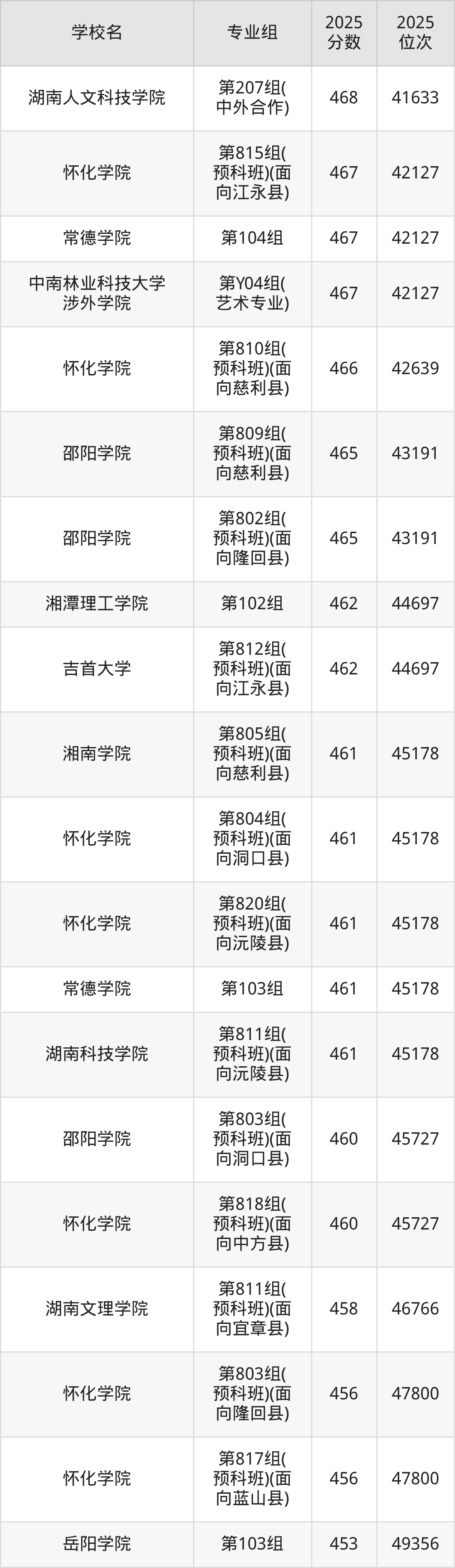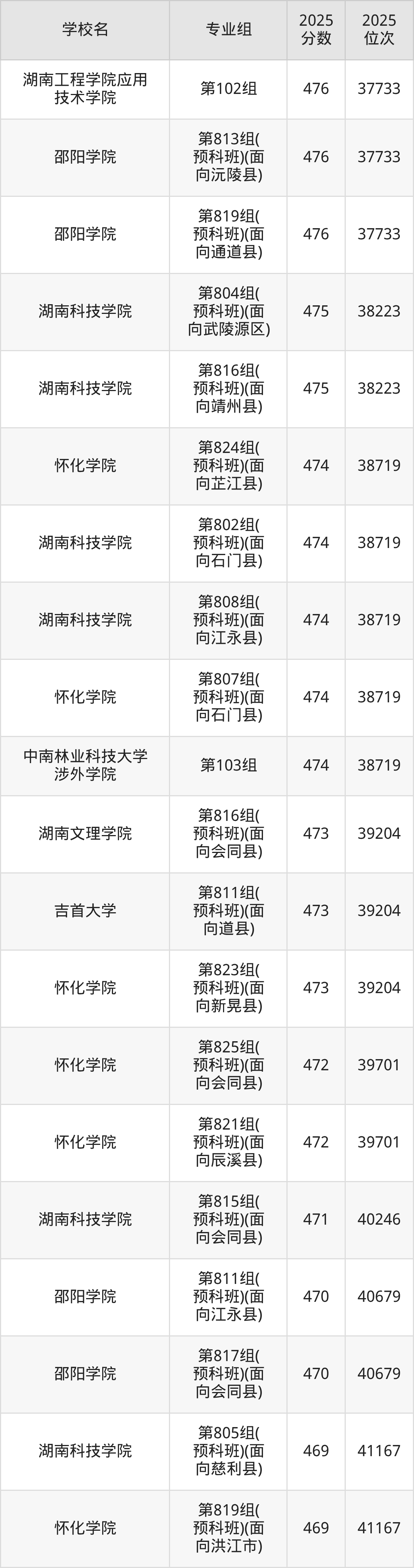 2025年湖南省所有二本大学录取分数线一览表如下: