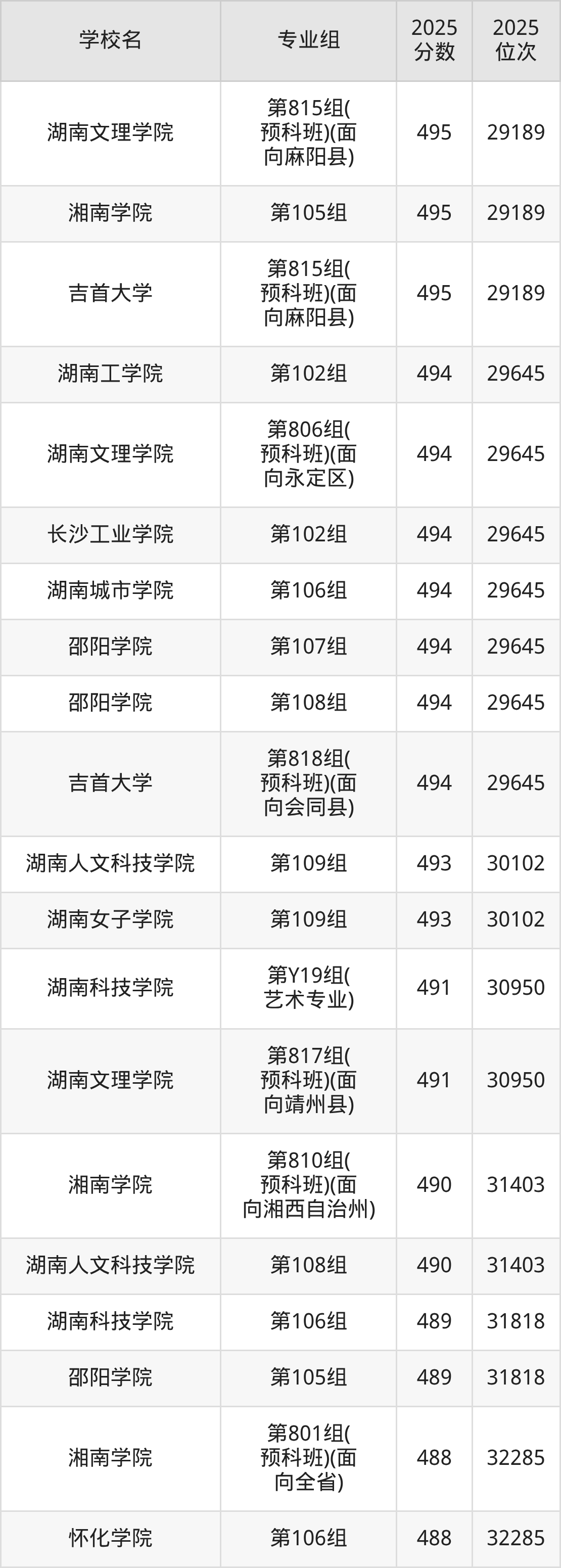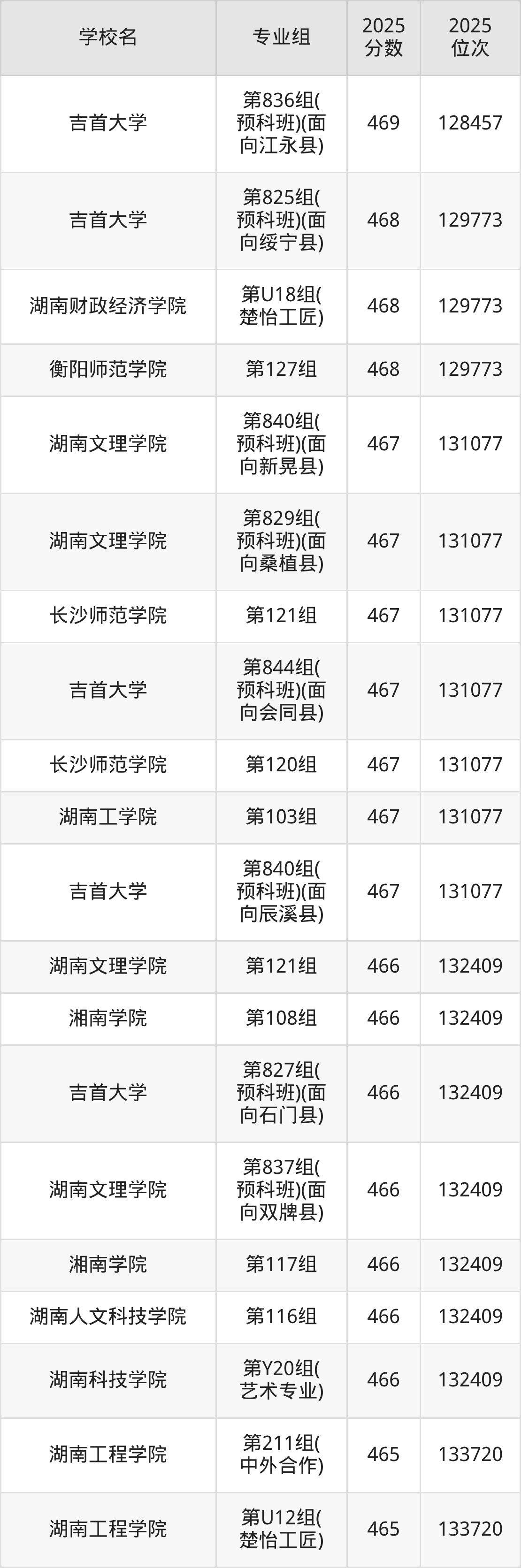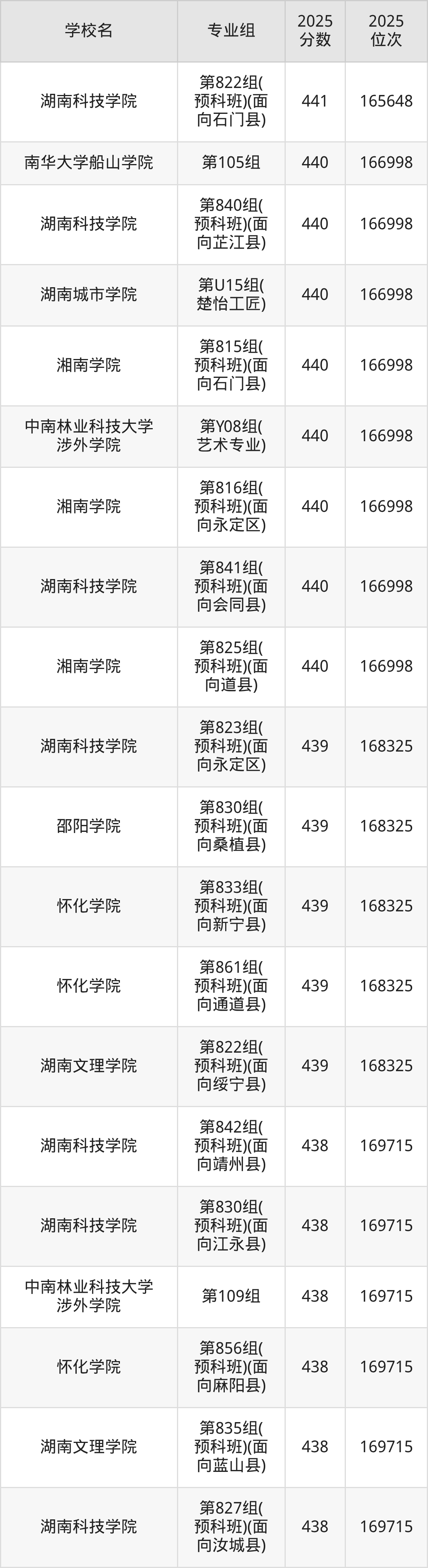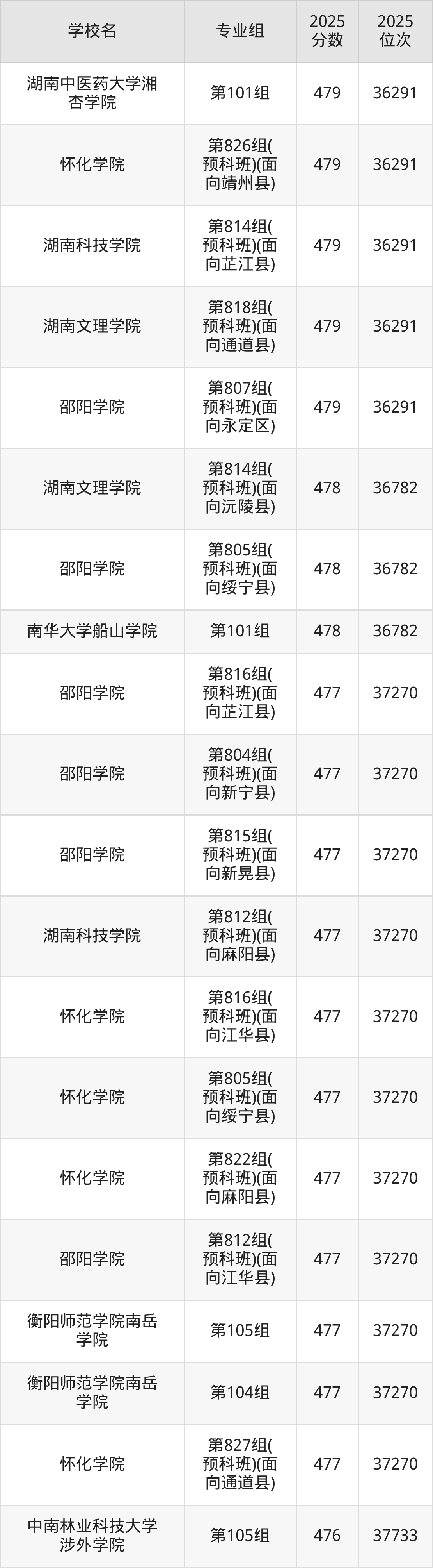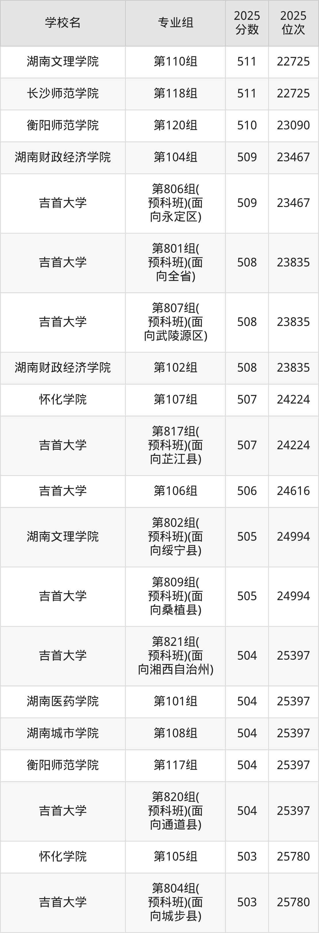 2025年湖南省所有二本大学录取分数线一览表如下: