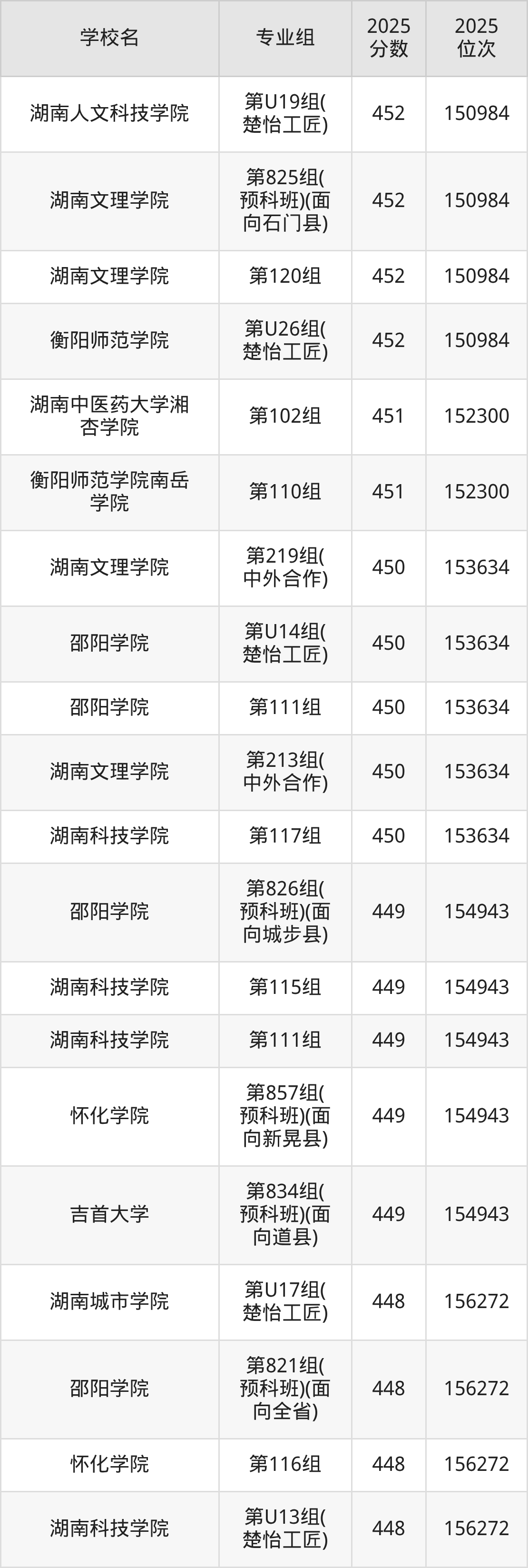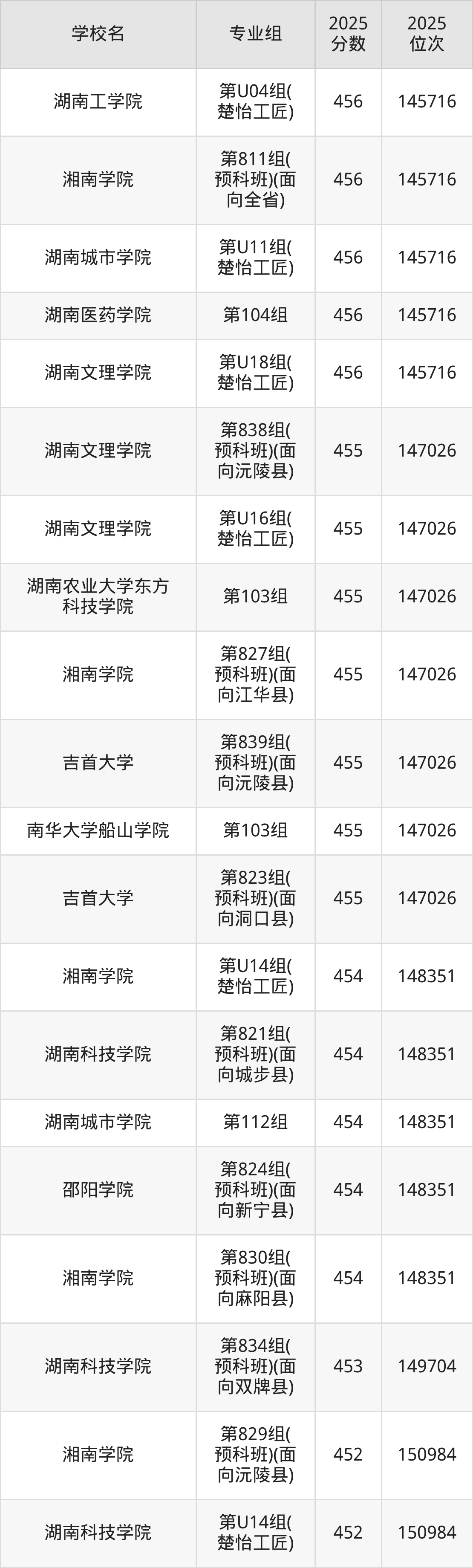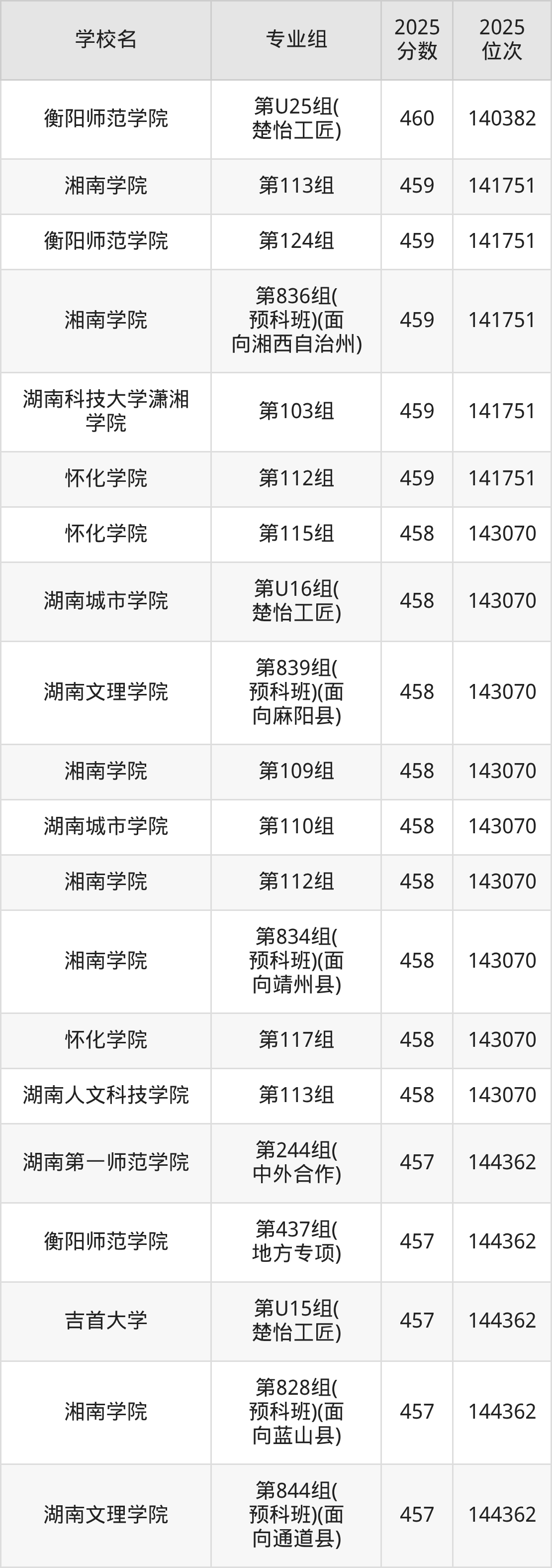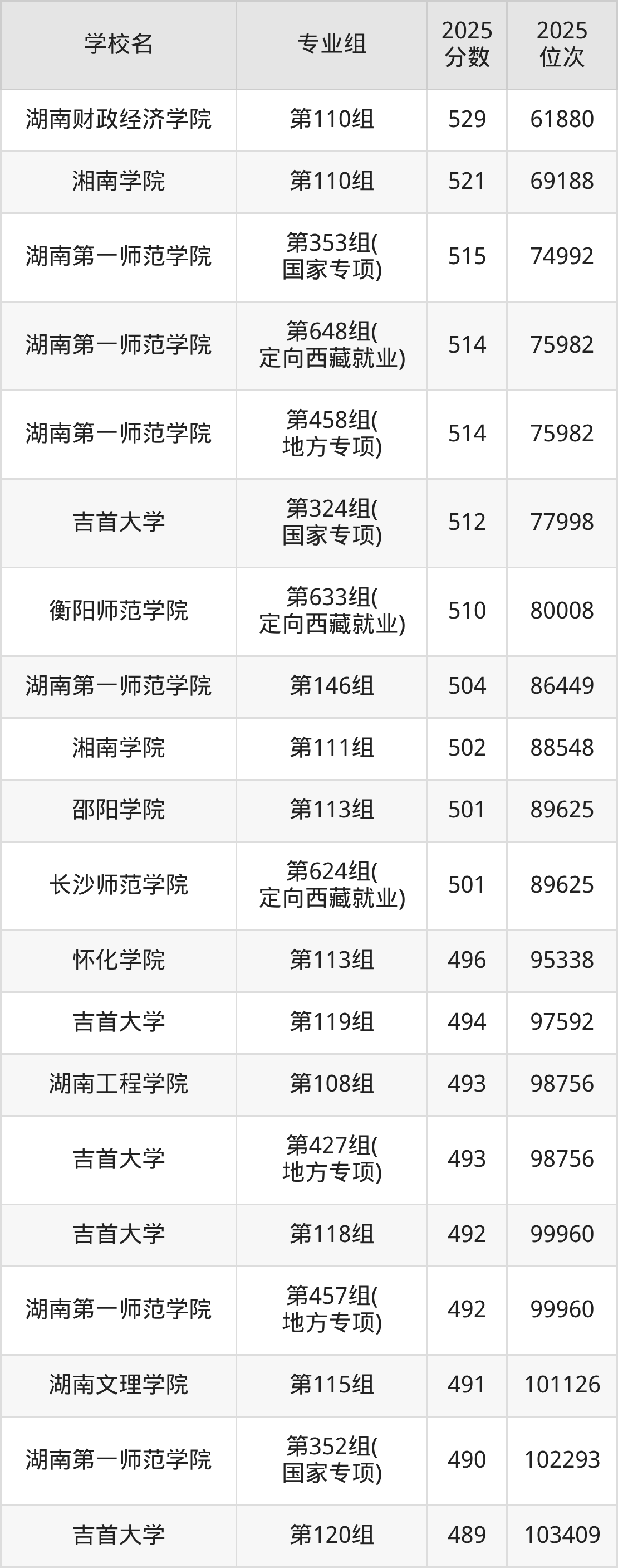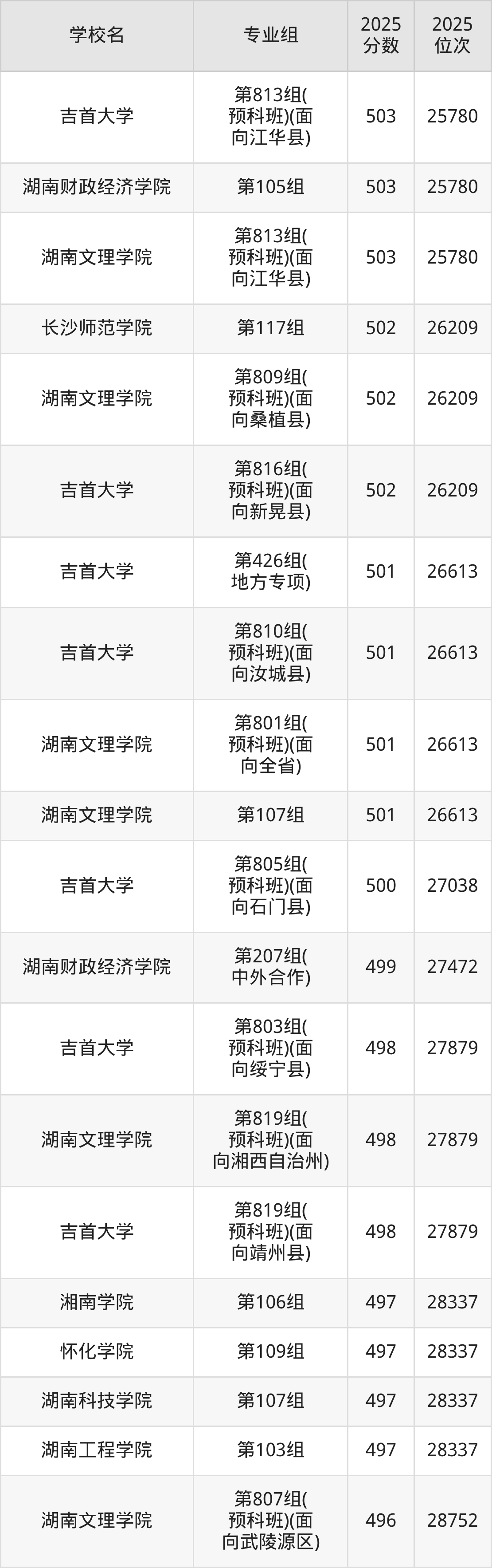 2025年湖南省所有二本大学录取分数线一览表如下: