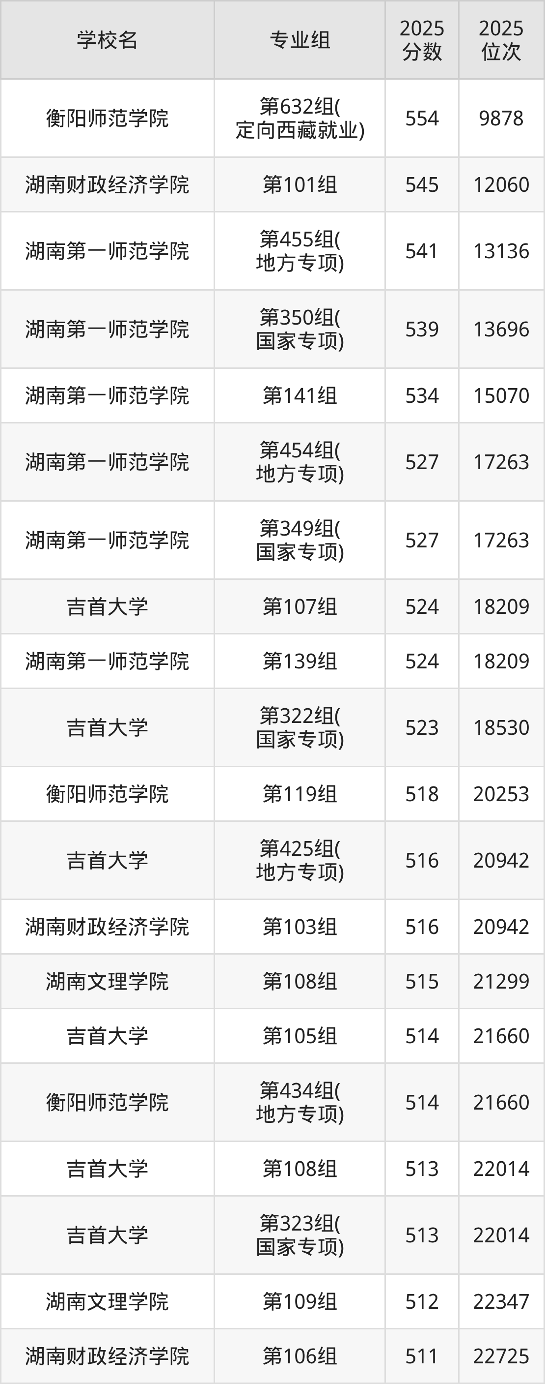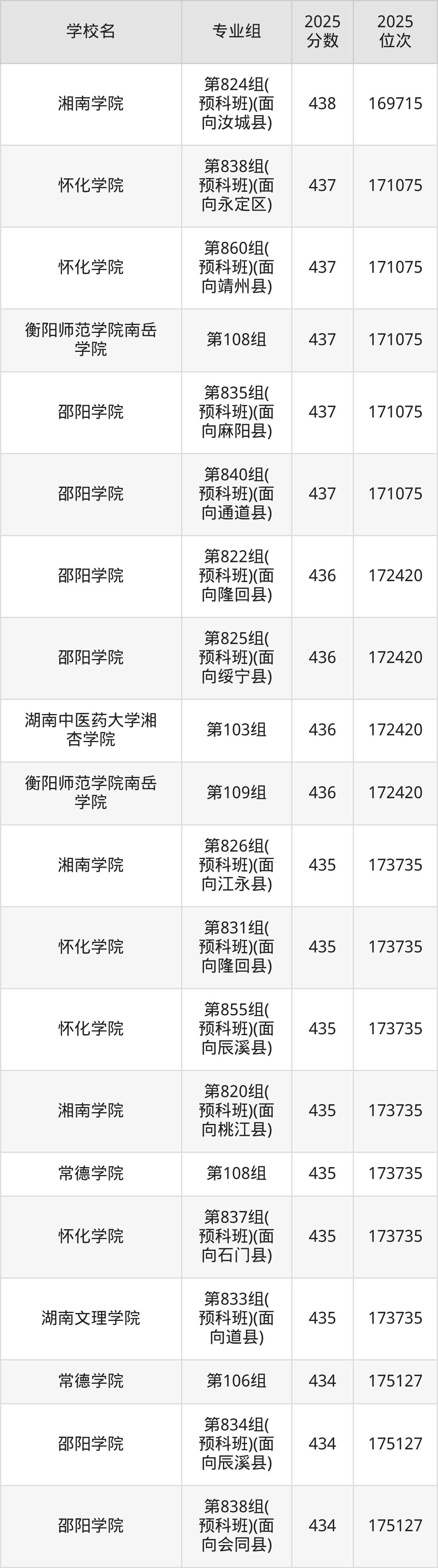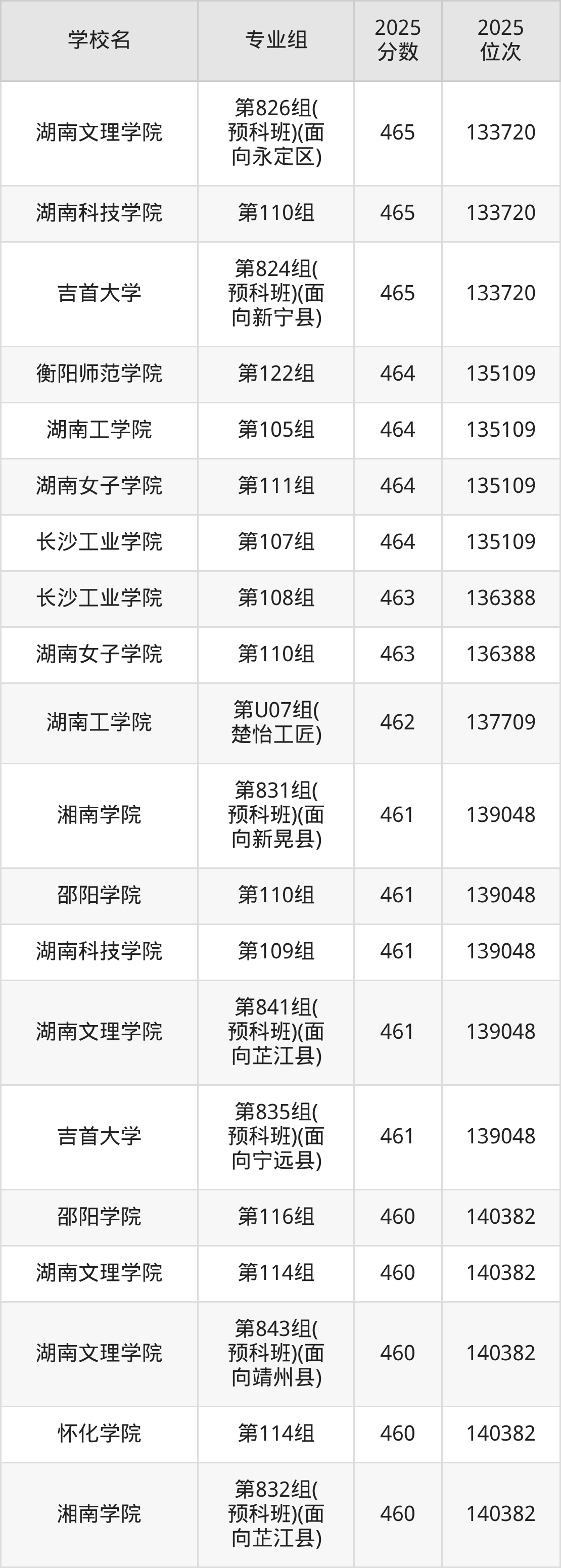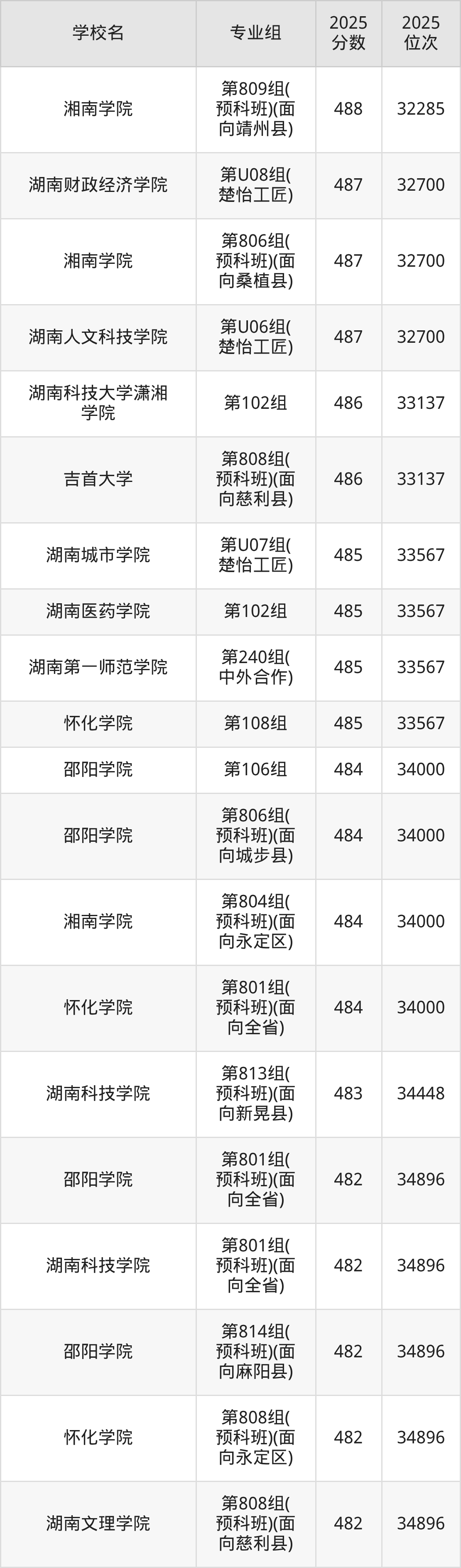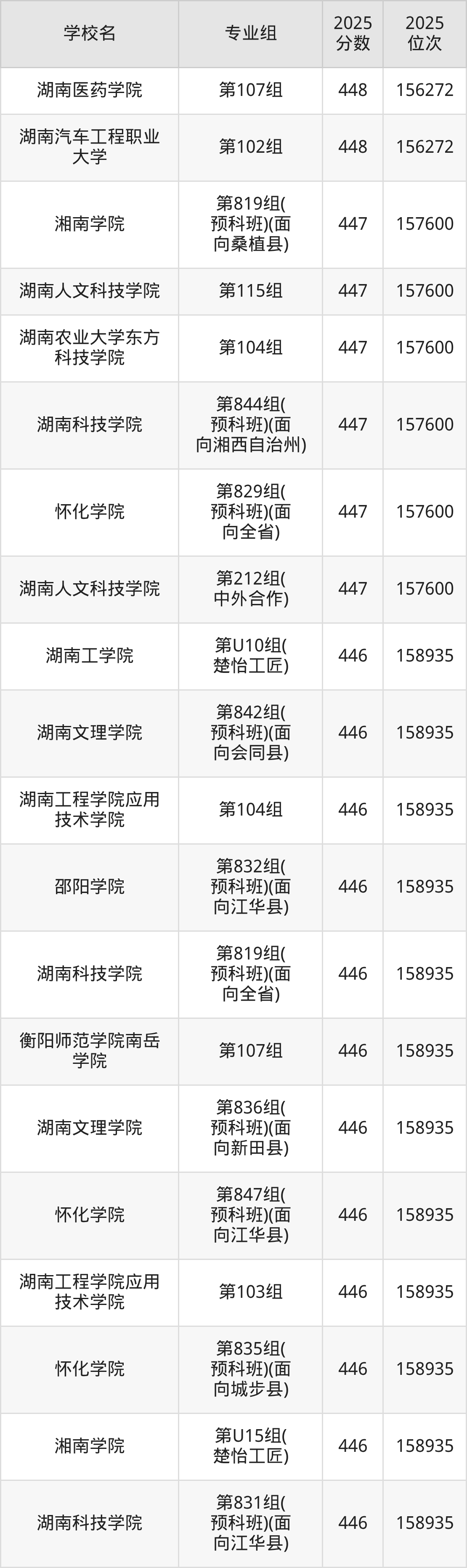 2025年湖南省所有二本大学录取分数线一览表如下: