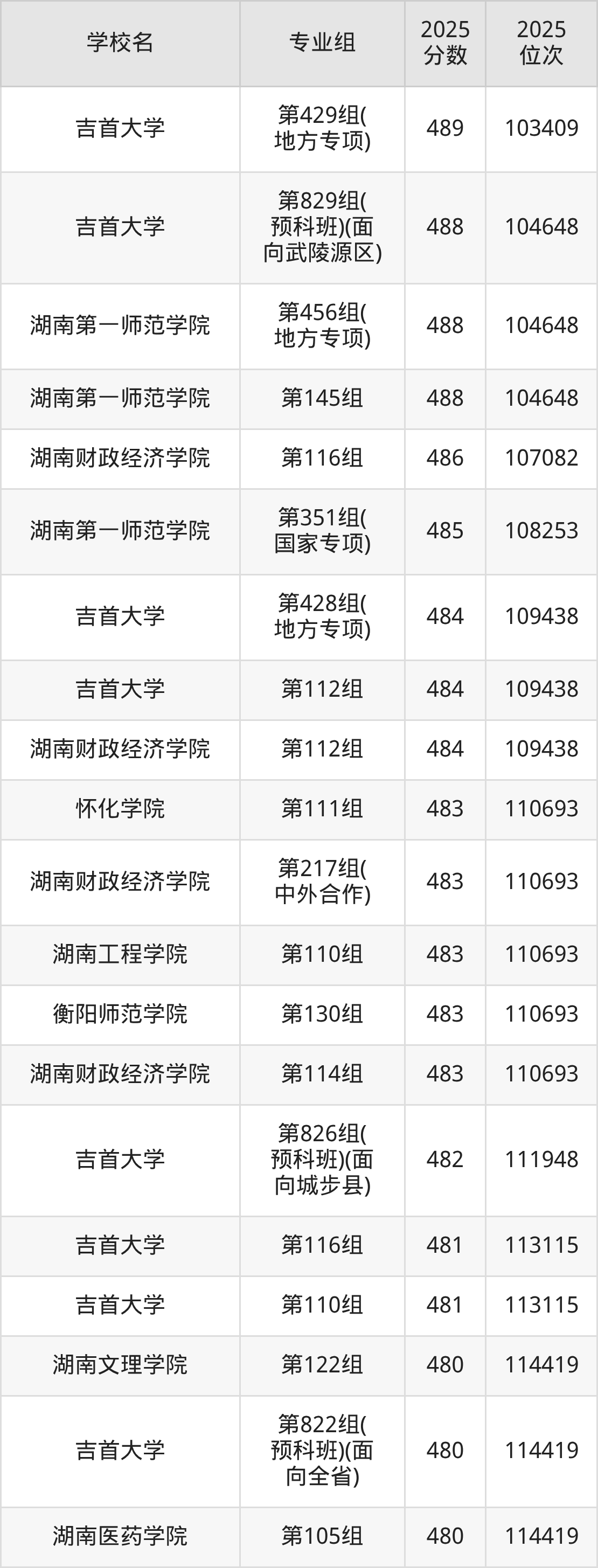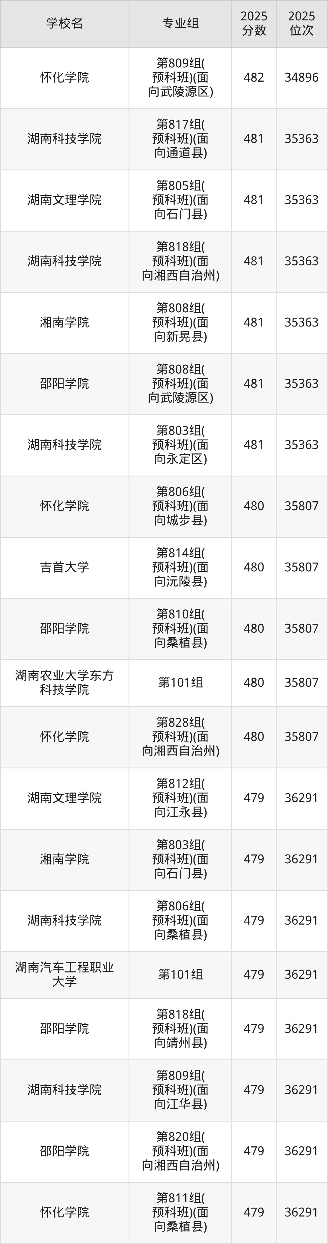 历史类480分左右的二本大学:湖南城市学院第U07组(楚怡工匠)、湖南医药学院第102组、湖南第一师范学院第240组(中外合作)、怀化学院第108组等。