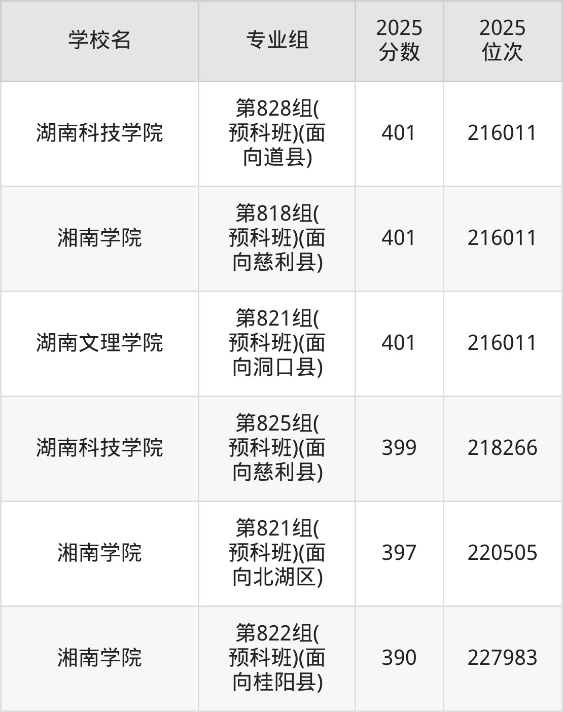2025年湖南二本大学最低录取分数线物理类是390分,分数线最低的学校是湘南学院,对应收分最低的专业组是第822组(预科班)(面向桂阳县)。