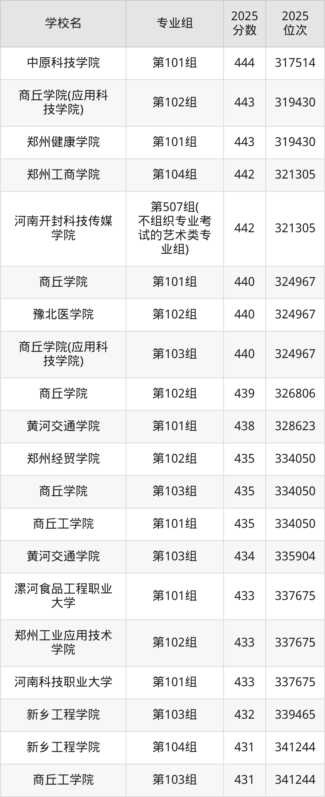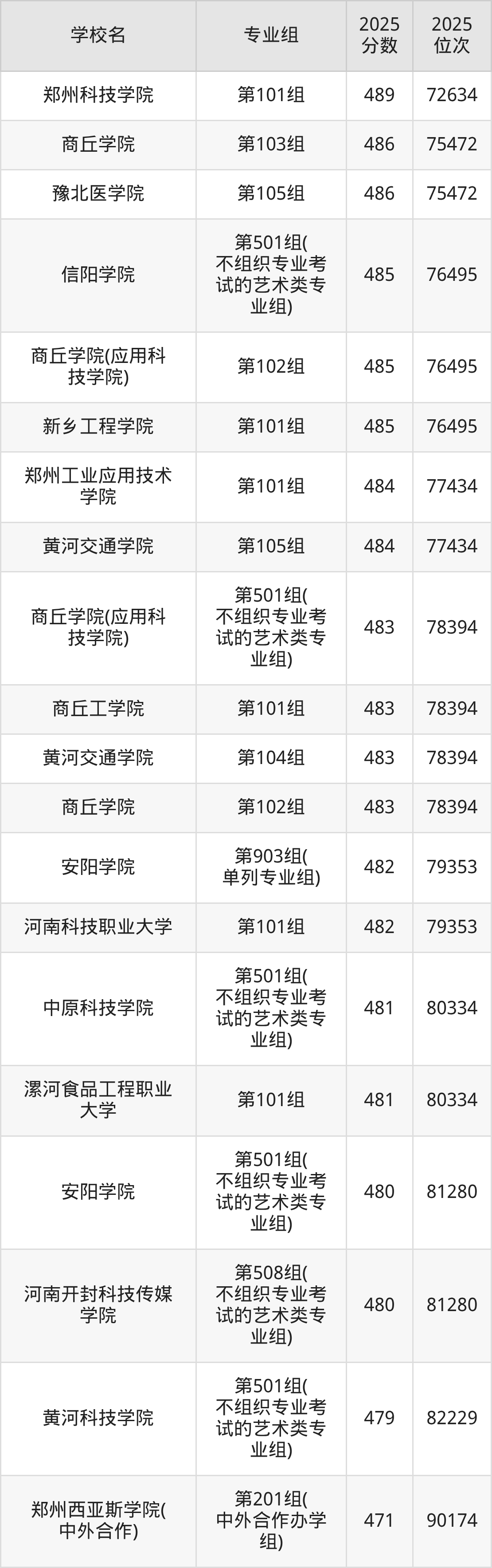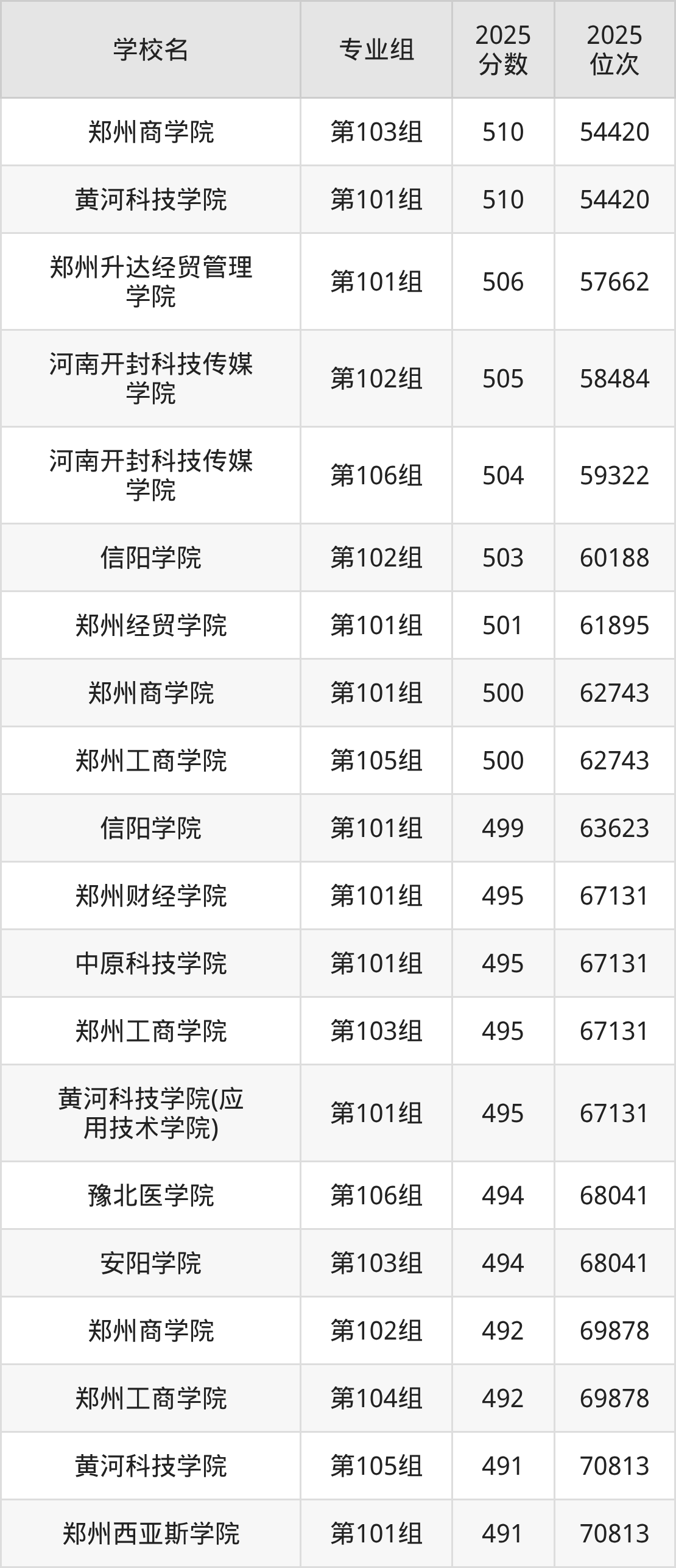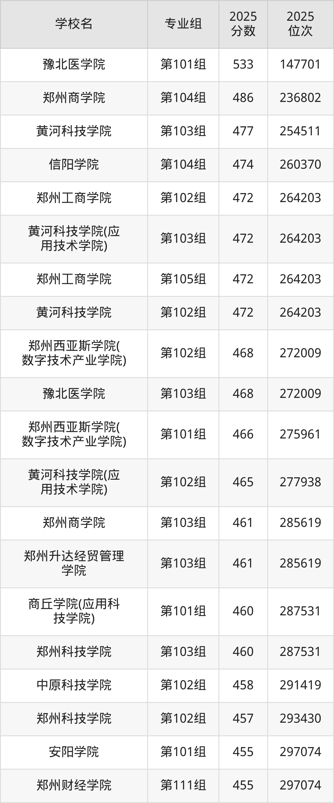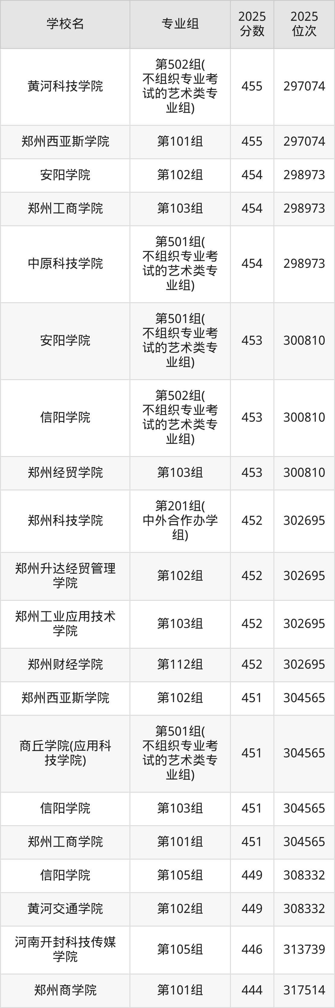 2025年河南省所有民办大学录取分数线一览表如下: