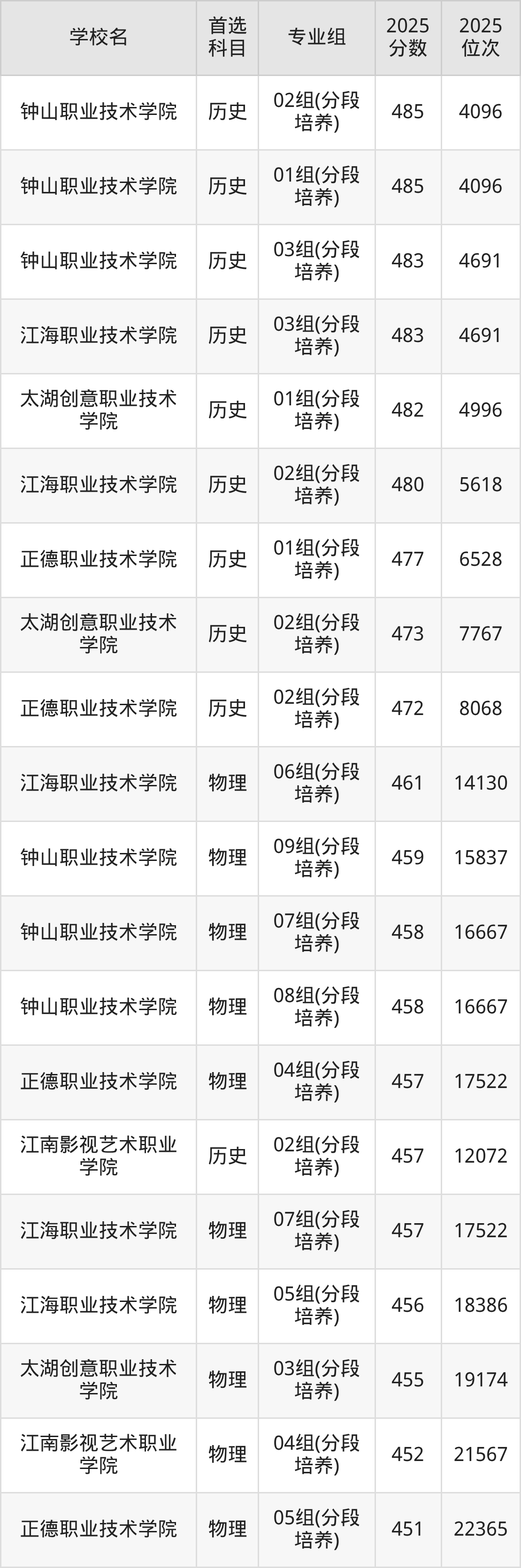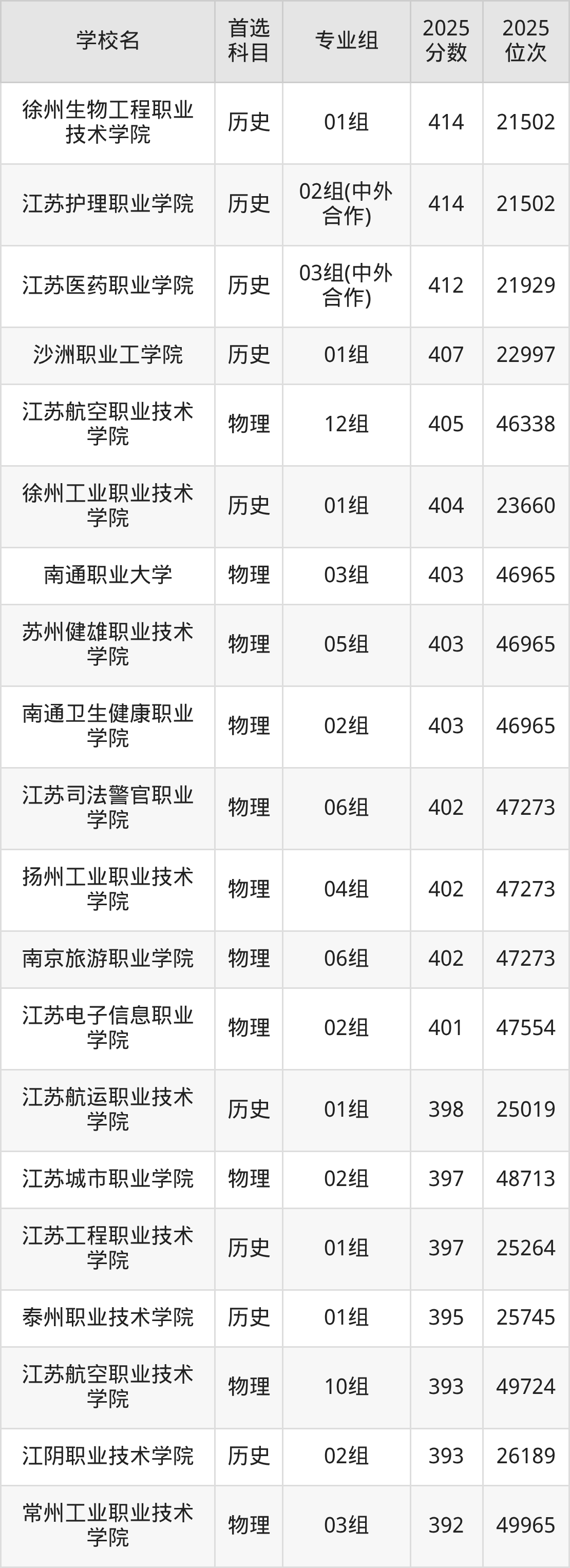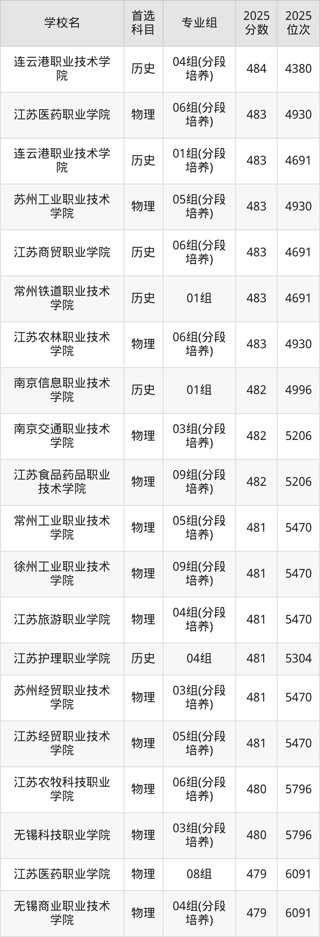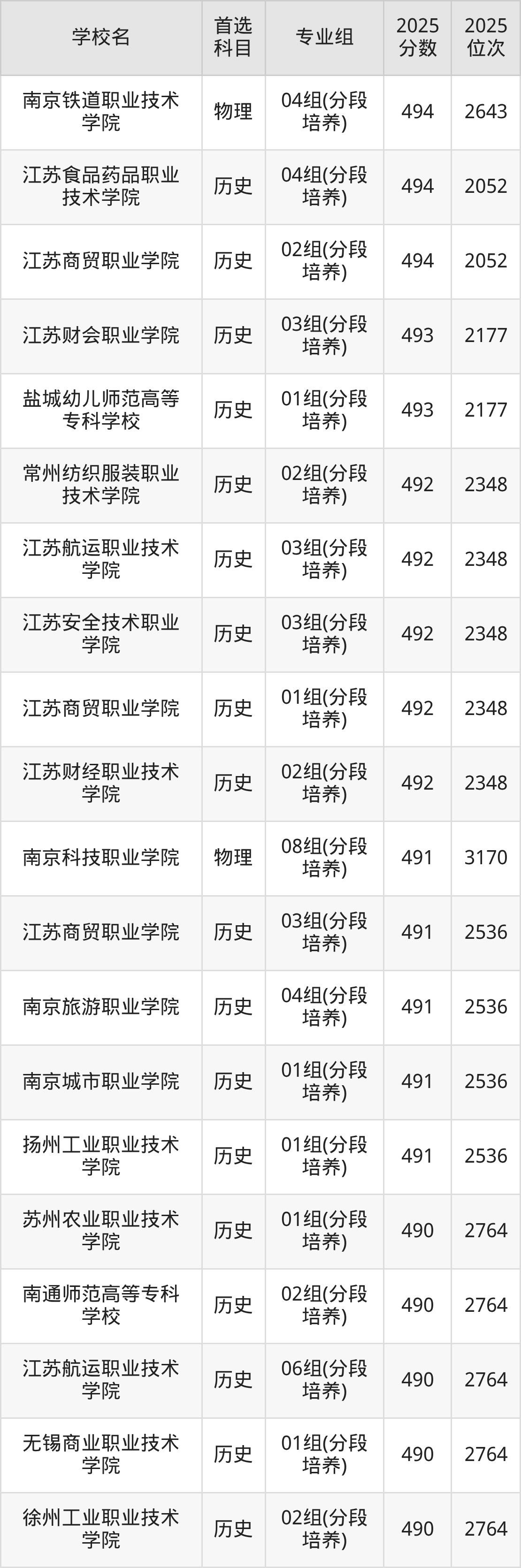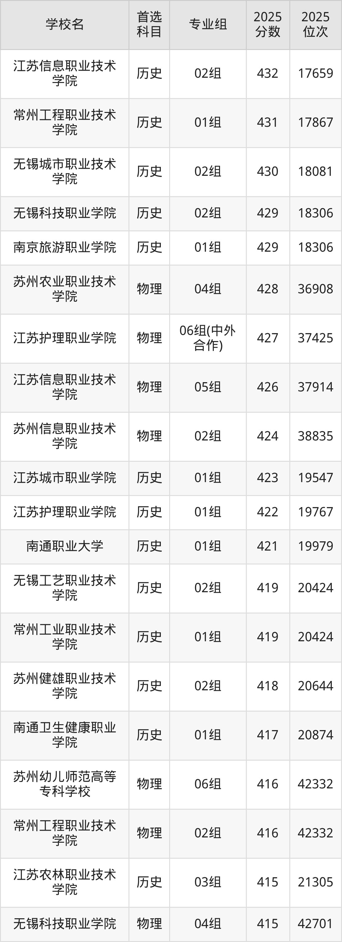 2025年江苏省所有公办专科院校录取分数线一览表如下: