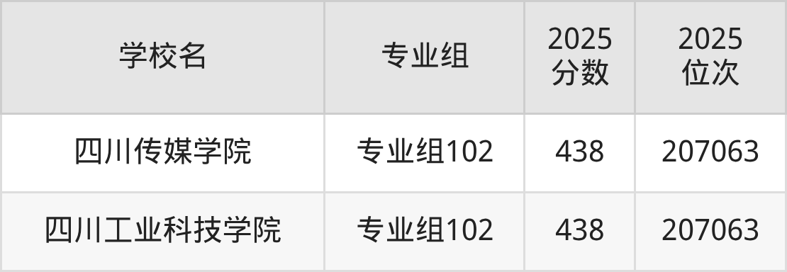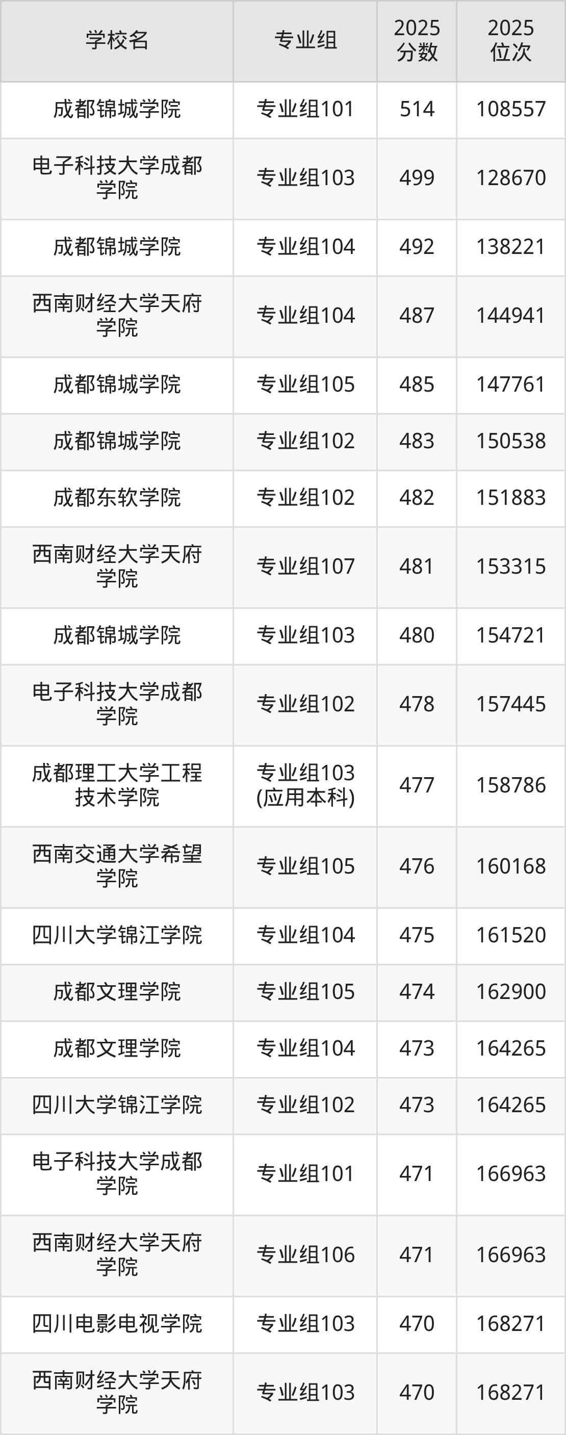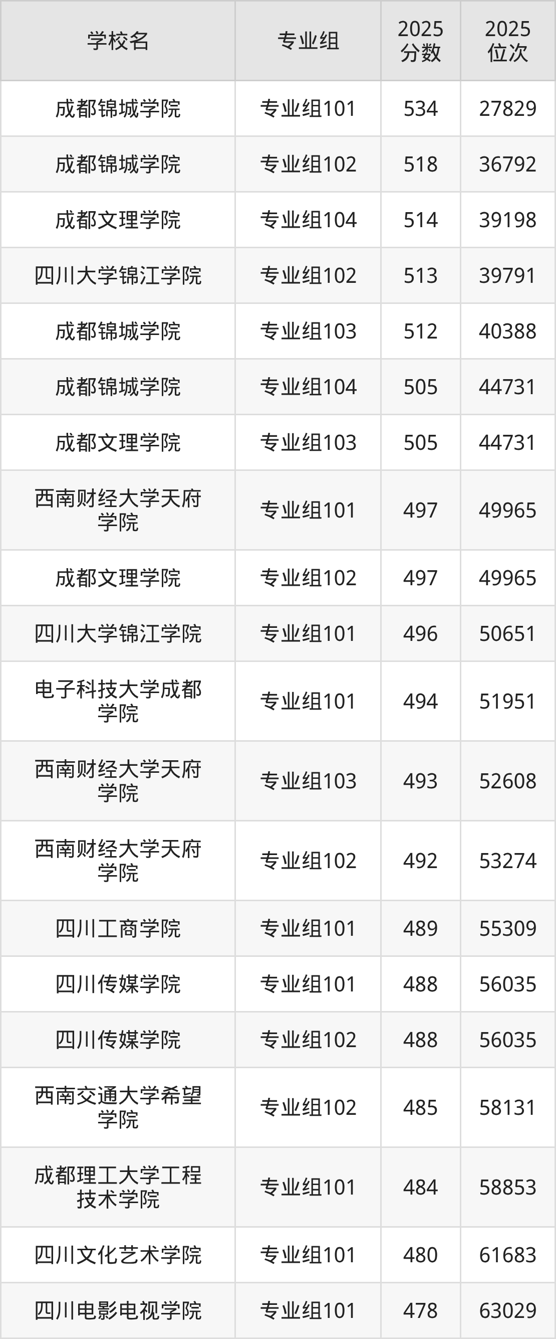 2025年四川省所有民办本科大学录取分数线一览表如下: