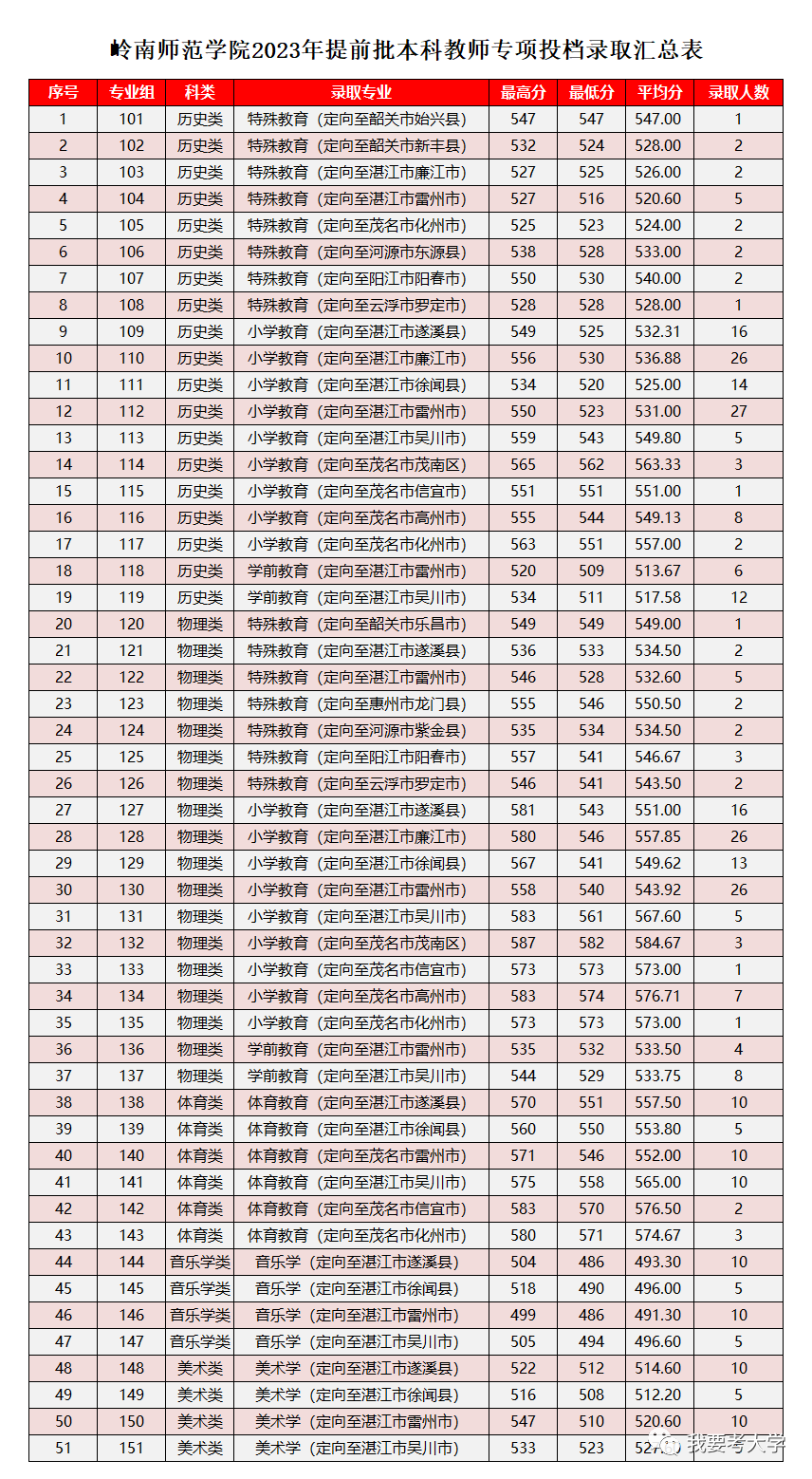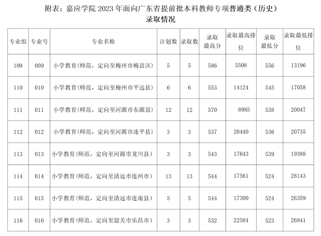 2023年嘉应学院提前批本科教师专项普通类历史、物理科目组相关专业已录取完成,共录取考生50名。各定向县(市、区)录取情况详见附表: