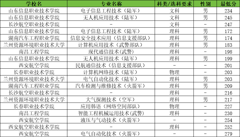 而士官学校在新疆文科的最低录取分数线则是234分,依旧仅限男生报考,因此新疆文科男生最低234分可以上士官学校。
