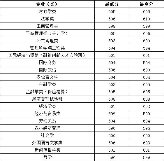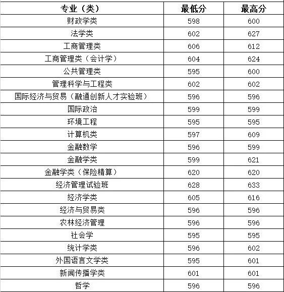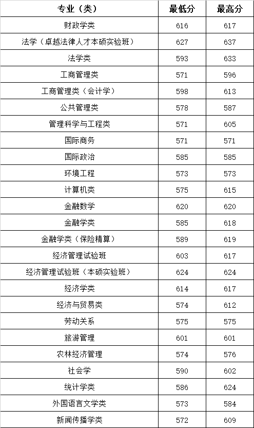 一、中南财经政法大学录取分数线