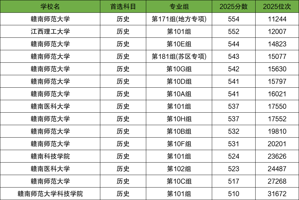 2025年赣州本科各大学专业组录取分数线(历史类):