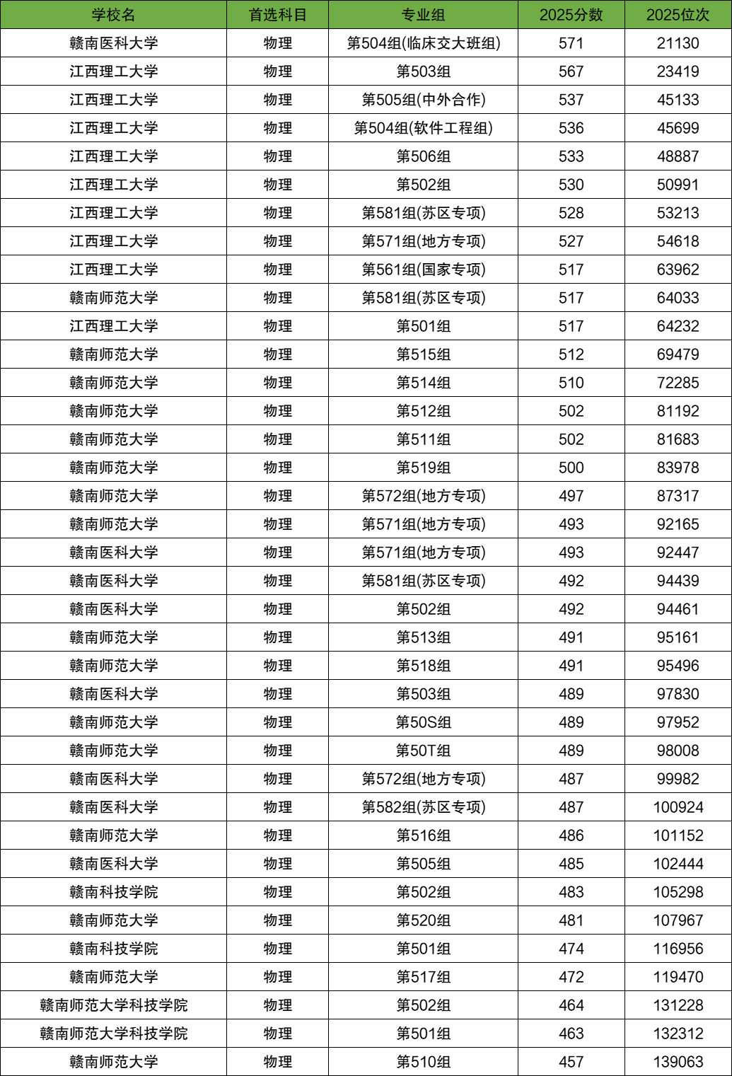 2025年赣州本科各大学专业组录取分数线(物理类):