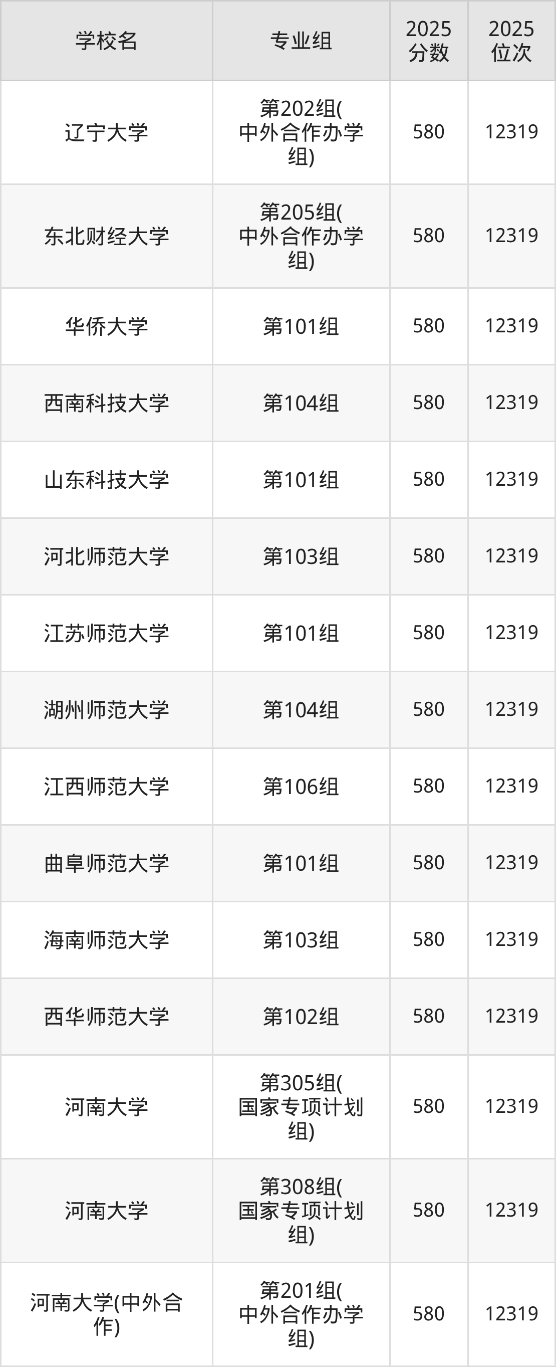 2025年河南历史类本科线471分,580分超本科线109分,可选的本科大学中,属于双一流的有:河南大学第305组(国家专项计划组)、河南大学第308组(国家专项计划组)、河南大学(中外合作)第201组(中外合作办学组)。