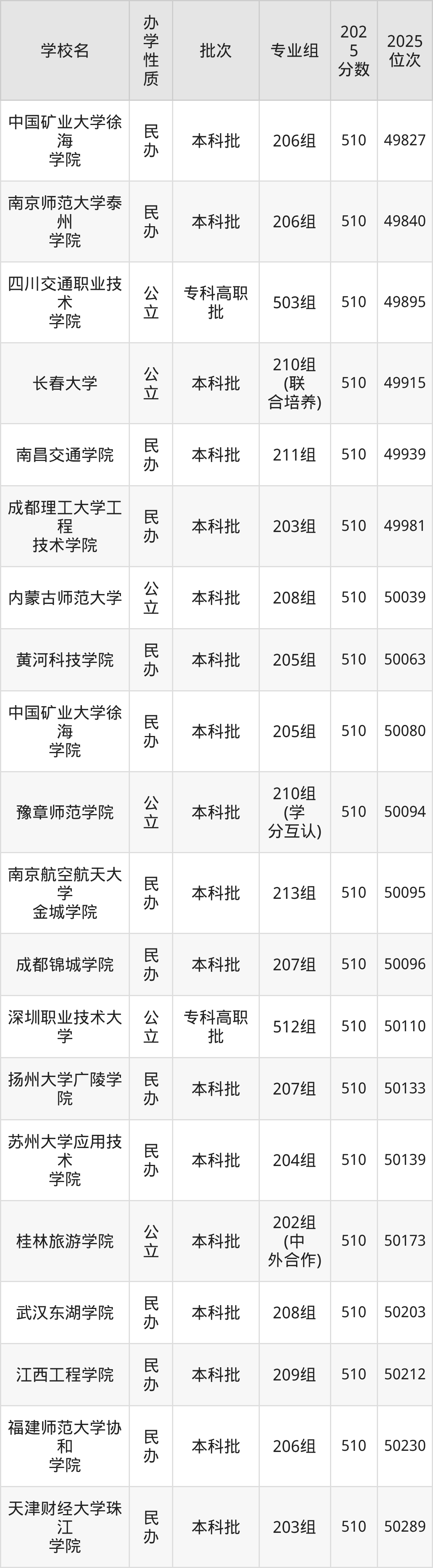 2025年广东历史类本科线是464分,因此对于广东510分考生而言,可以上的大学多数均属于民办。比较好的有省重点的内蒙古师范大学208组,2025年学校最低分是510分。