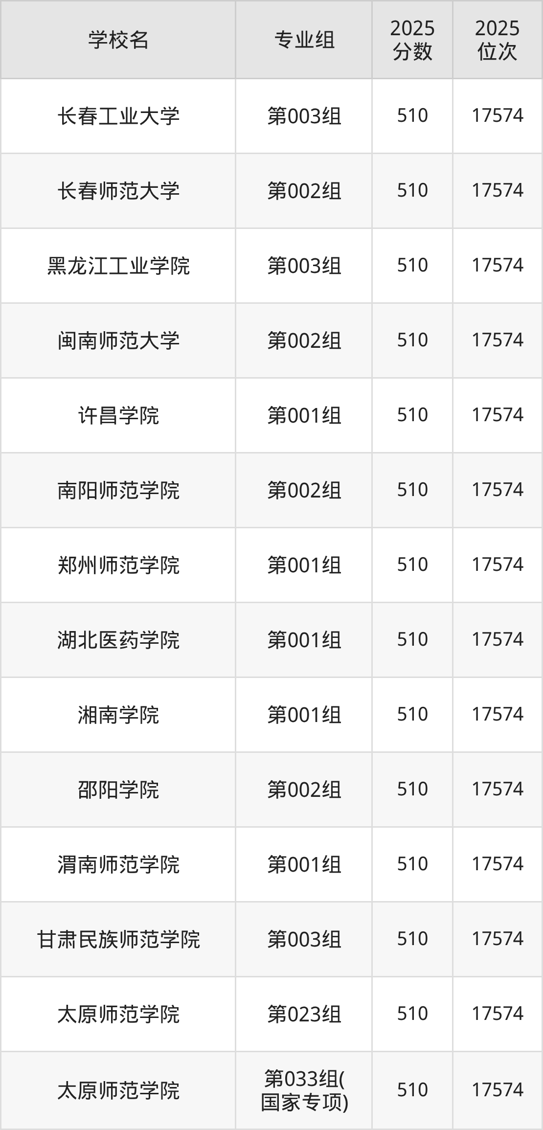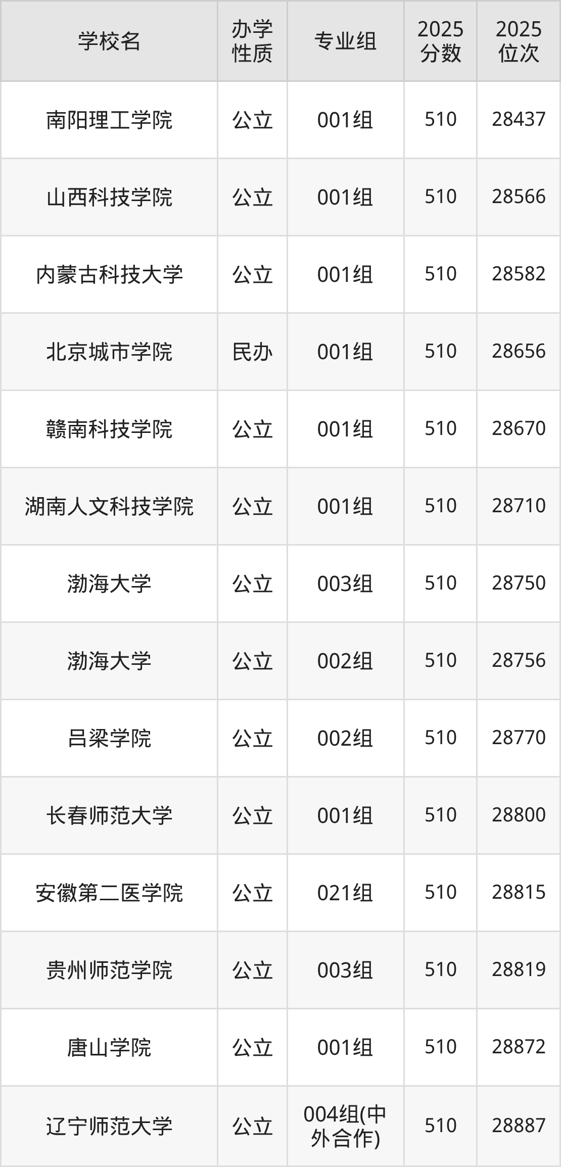2025年山西历史类本科线443分,510分超本科线67分,可选的本科大学中,属于公办二本的有:长春师范大学第002组、黑龙江工业学院第003组、许昌学院第001组等。