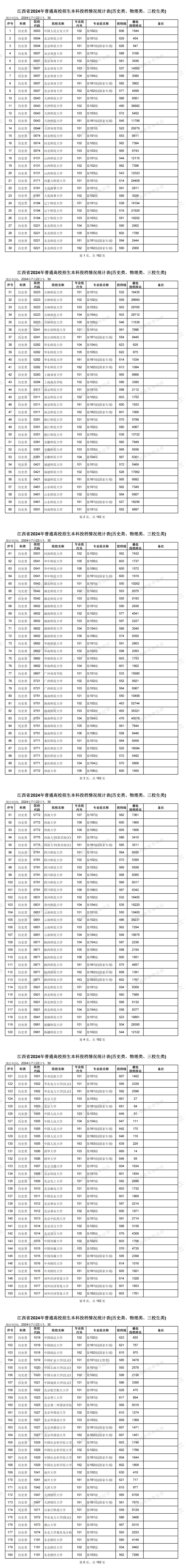 江西省2024年普通高校招生本科投档情况统计表(历史类、物理类、三校生类)
