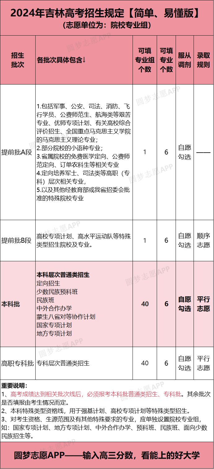 2024年吉林省各批次志愿填报数量如下图。(2024年与2025年志愿设置相差不大)