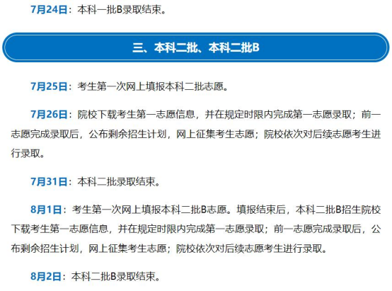 专科普通批录取:7月27日至29日