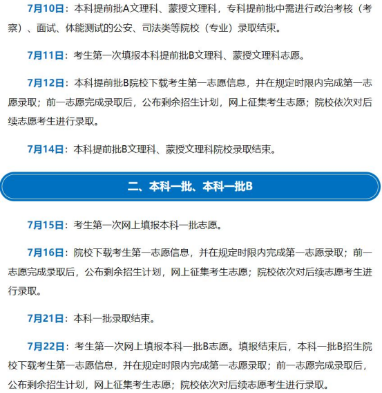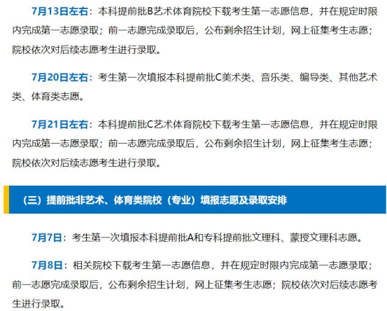 本科提前批录取:7月6日至14日