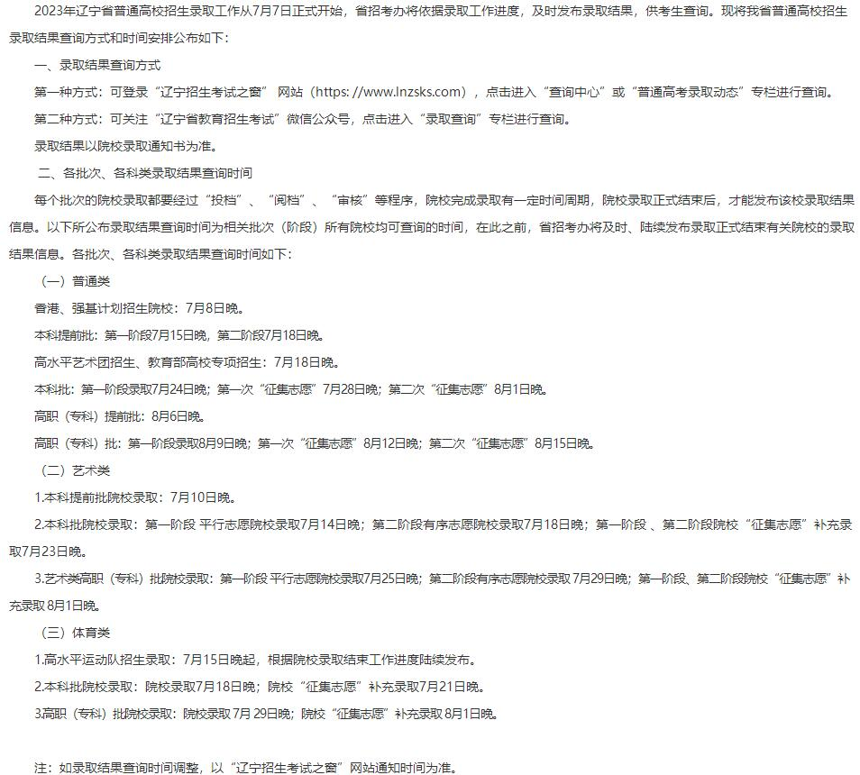 辽宁高考录取通知时间: