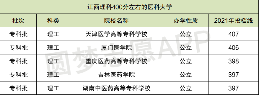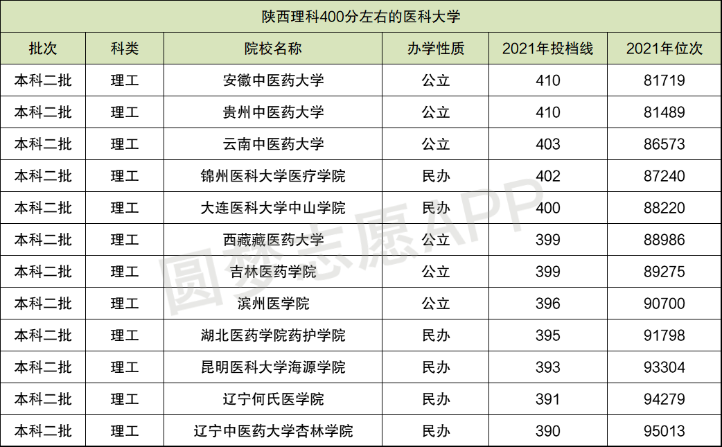 由于每所院校在每个省份的录取情况都不一样,小编就以陕西和江西为例,根据陕西和江西教育考试院公布的2021年投档分数线,为大家整理出陕西和江西理科400分左右的医科大学。