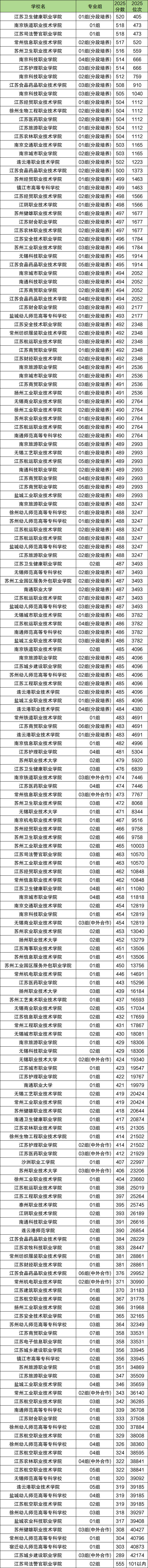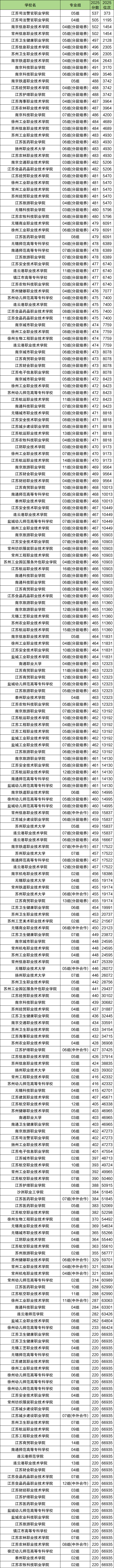 篇幅有限,仅整理了省内公办大专院校录取分数线情况。另外专科位次表是重新排名的,请参考【江苏2025专科一分一段表】。