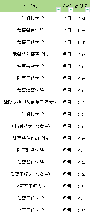 而军校在宁夏文科的最低录取分数线则是499分,因此宁夏文科考生最低499分可以上军校。