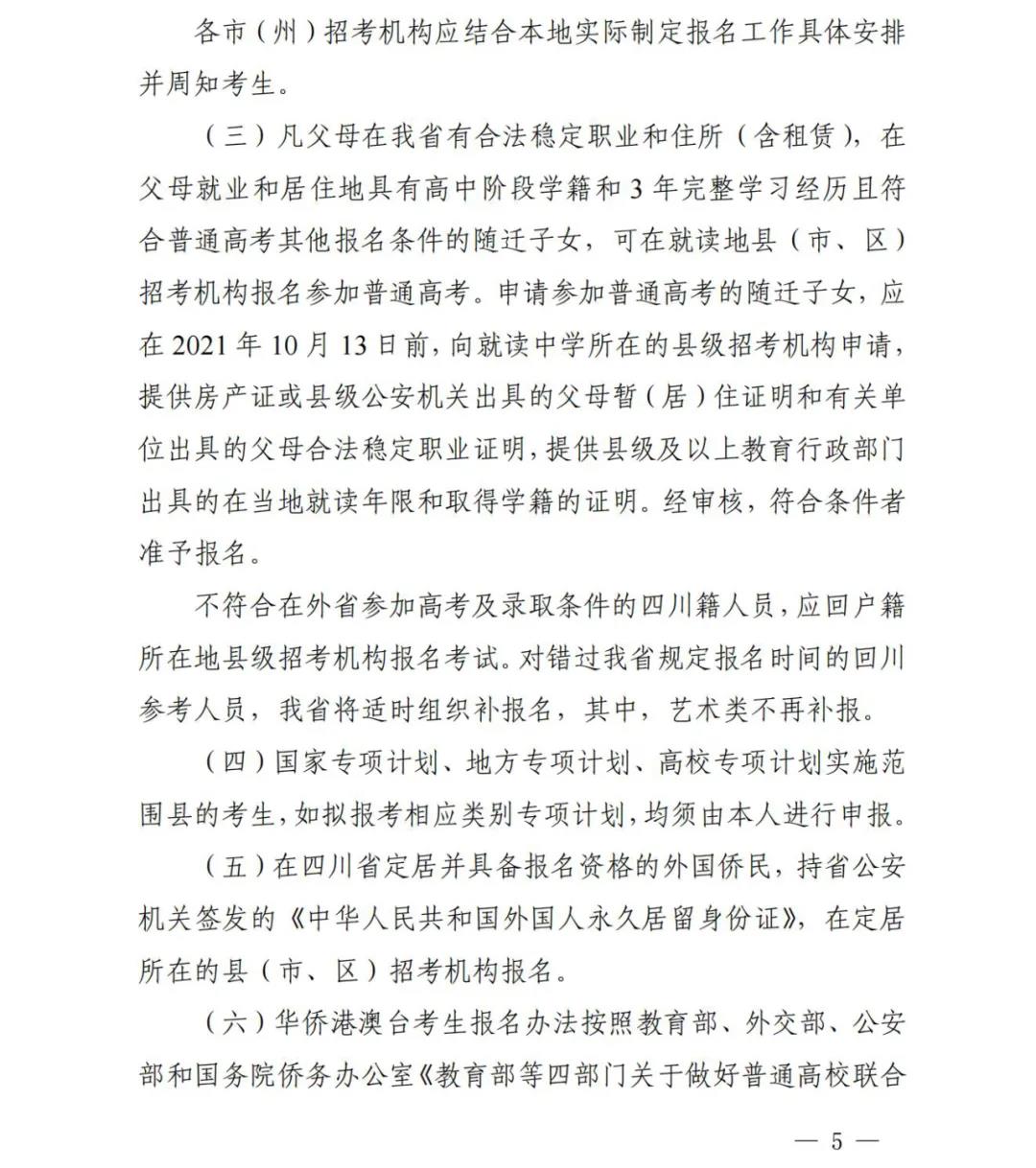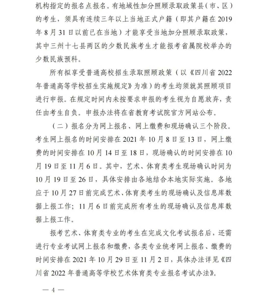二、关于四川省2022年普通高考报名工作的通知