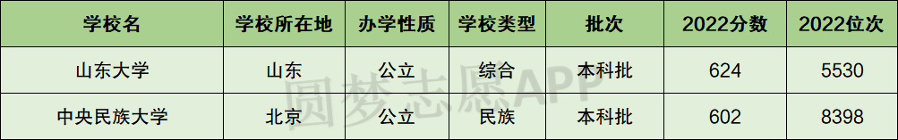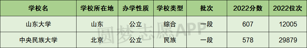 一、中央民族大学和山东大学分数线