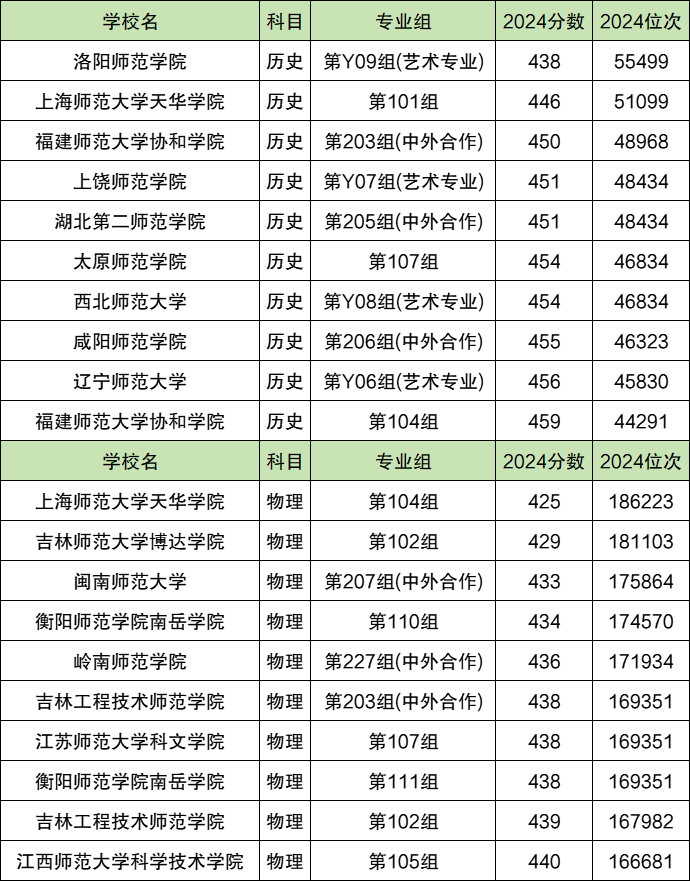 2024年湖南二本师范大学最低分数线历史组是438分,物理组是425分,对比湖南当年本科线可发现:首选历史科目的考生最低超过本科线即可、首选物理科目的考生最低超过本科线3分即可有机会上二本师范大学。