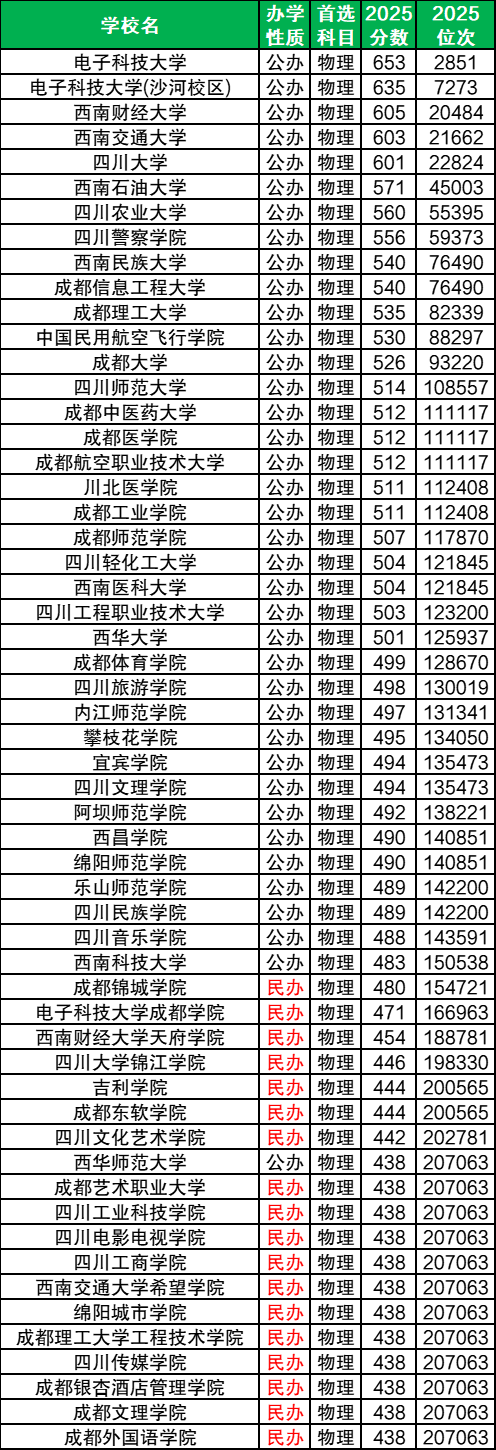 注:本文排名数据来源于校友会2026中国大学排行榜,排名仅供参考,不可作为择校的唯一依据。下面整理了2025年四川高考所有省内本科大学最低录取分数线(不含中外合作、专项、定向、联合培养等单列分数)。