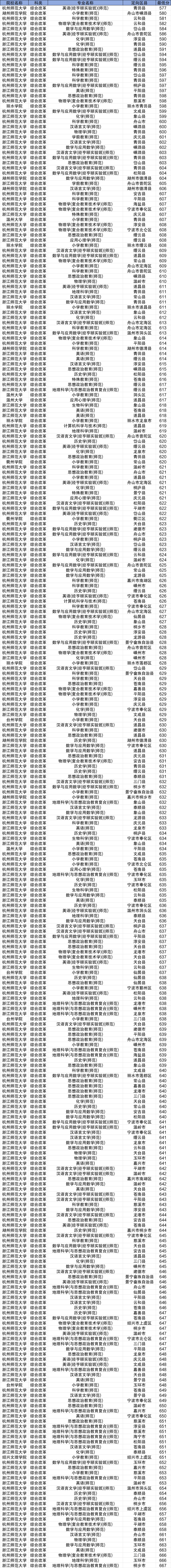 浙江地方公费师范生录取分数线完整版一览表(需滑动查阅):