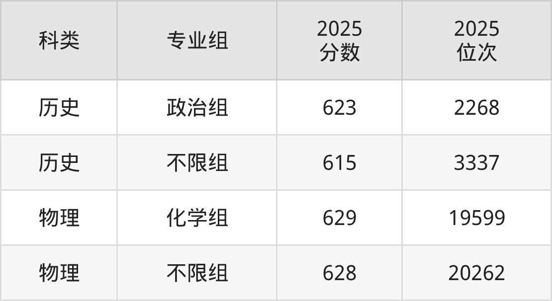 从选科角度来看,华中师范大学2025年物理类录取最低分为628分、历史类录取最低分为617分。2026届物理类位次在20262名及以内、历史类位次在3030名及以内报考被录取的概率最大。