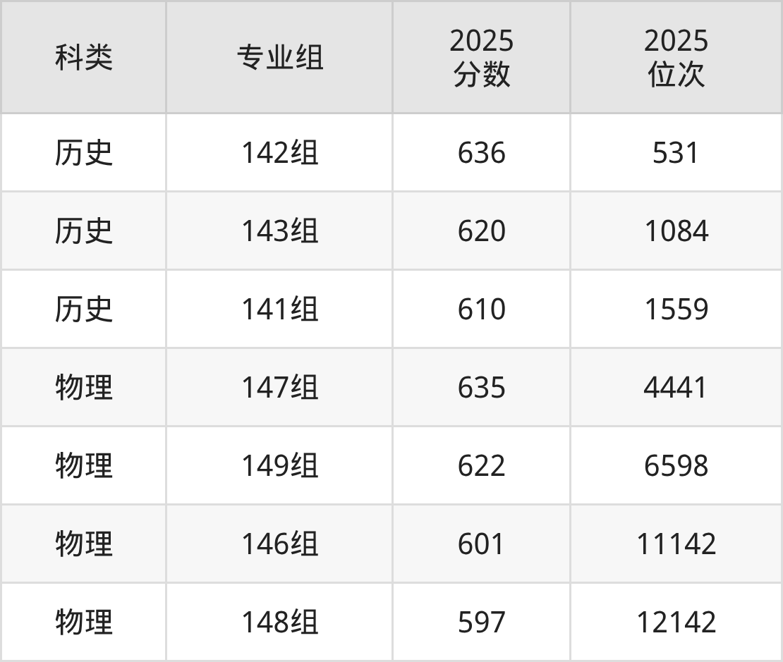 物理+化学:147组最低635分(位次4441名);149组最低622分(位次6598名)。