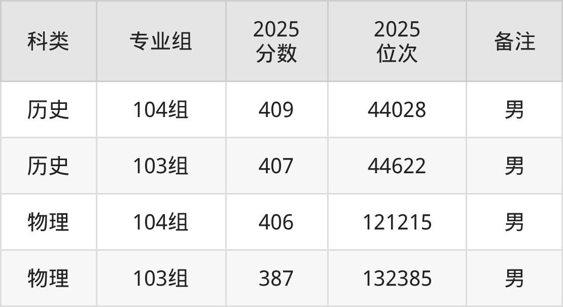 历史+不限:男生407分(位次44622名)。