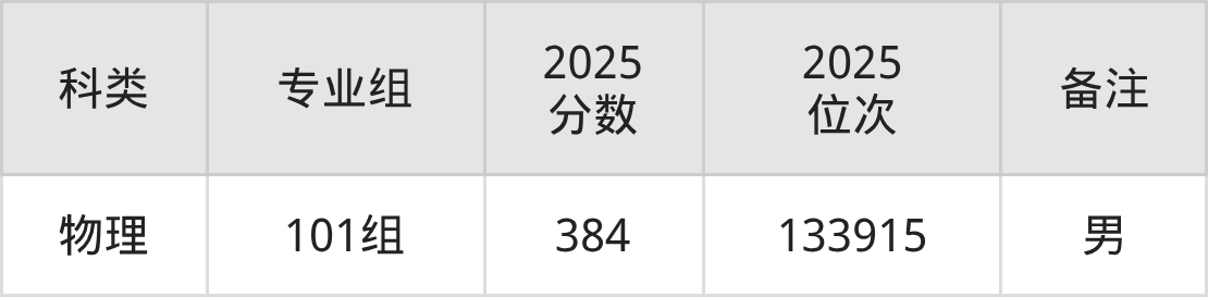 物理+不限:男生384分、位次133915名。